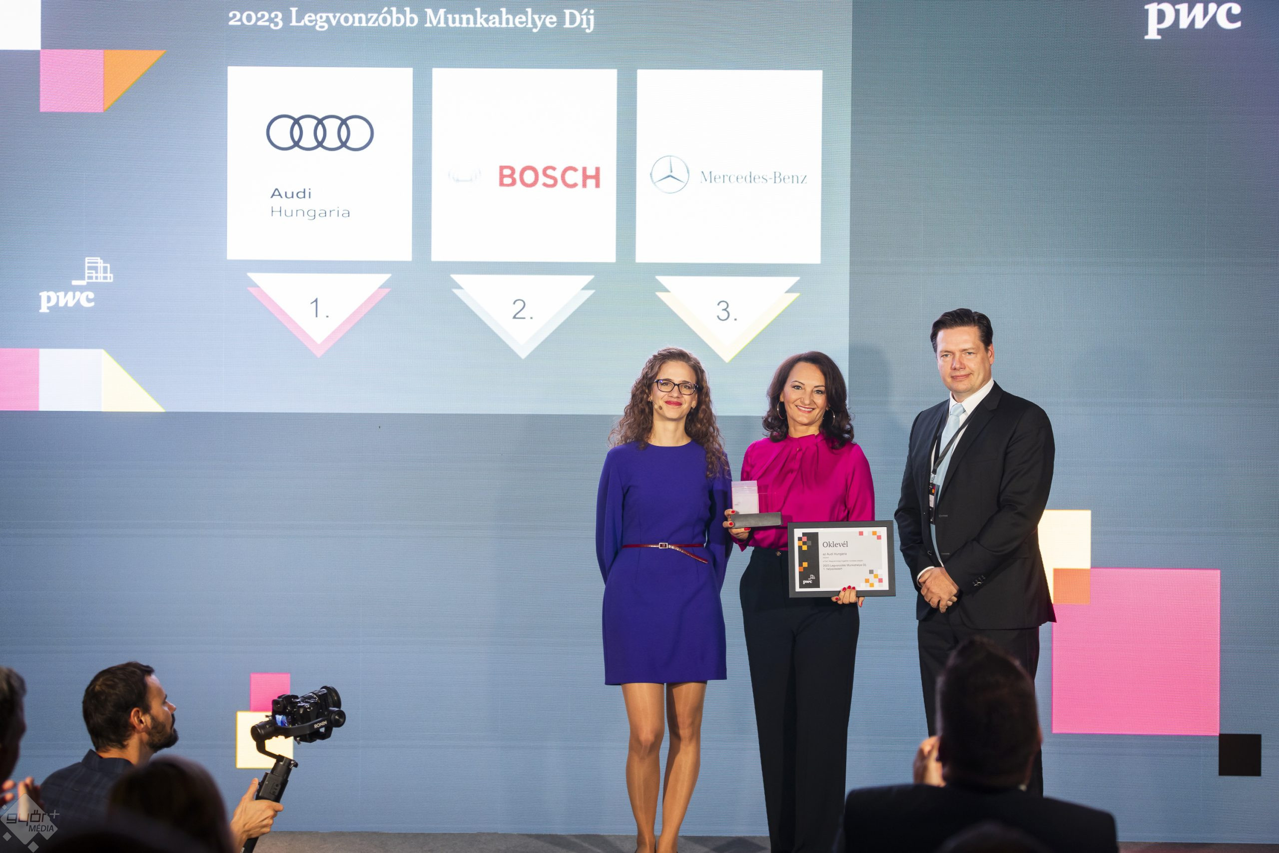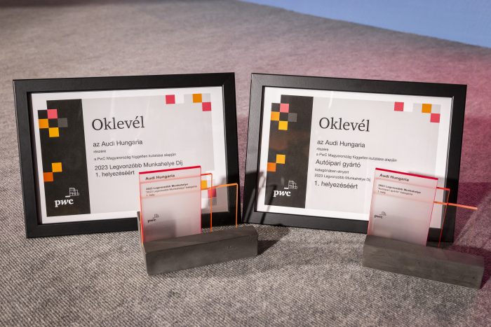 Ismét az Audi Hungaria vehette át a Magyarország Legvonzóbb Munkahelye díjat, melyet az összesített mezőnyben és az autóiparági munkáltató kategóriában elért első helyezésével érdemelt ki. A díj alapjául a PwC Magyarországon végzett online kutatása szolgált, mely több mint 80 000 válaszadó munkahely-választási preferenciáit tükrözi.