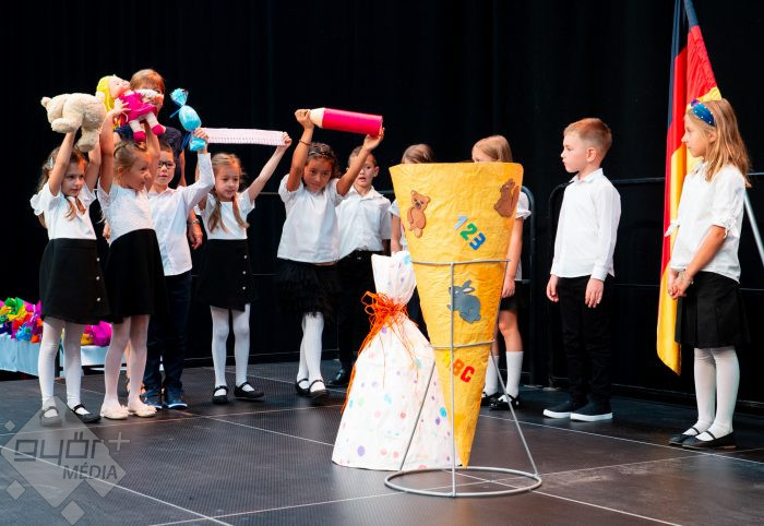 Beszédét befejezve Lange főigazgató úr egyenként köszöntötte az új tanárokat, valamint a diákokat. A korábbi nagycsoportos óvodások zenei előadása után a két elsős osztály osztályfőnökei a német hagyománynak megfelelően „Schultüte”-ket adtak át a kis elsősöknek.