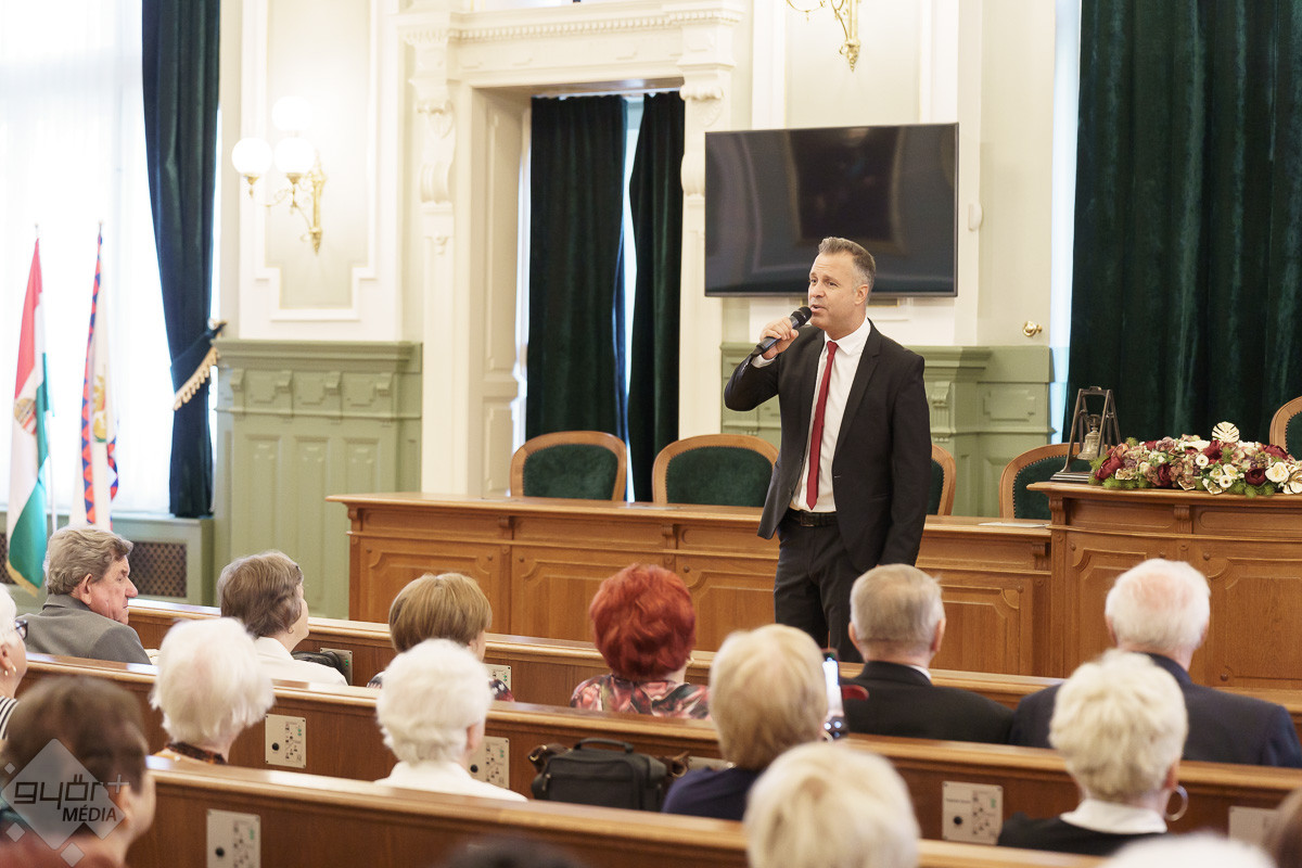 „A győri önkormányzat nagyon büszke azokra, akik végigdolgozták az életüket, létrehozták azokat a gyárakat, azokat az intézményeket, amelyek mára Győr városát stabillá tették.” – kezdte köszöntőjét dr. Dézsi Csaba András. A polgármester beszélt arról is, hogy az önkormányzat mindent megtett azért, hogy a szépkorúak aktívan tölthessék mindennapjaikat, többek között az országban elsőként létrehozták a Győri Nyugdíjasklubok Házát. „Győr büszke a nyugdíjas társadalmára! – emelete ki a polgármester.