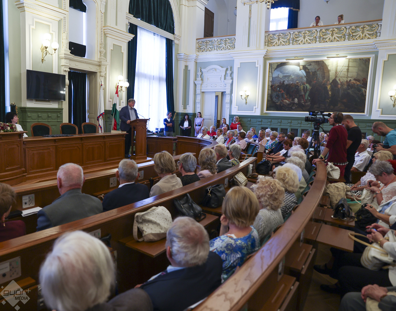 Az Idősek Világnapja alkalmából a győri önkormányzat a Városháza dísztermében műsoros ünnepséggel fejezte ki tiszteletét és megbecsülését azok iránt, akik hosszú, munkában eltöltött évek után töltik jól megérdemelt nyugdíjas éveiket.