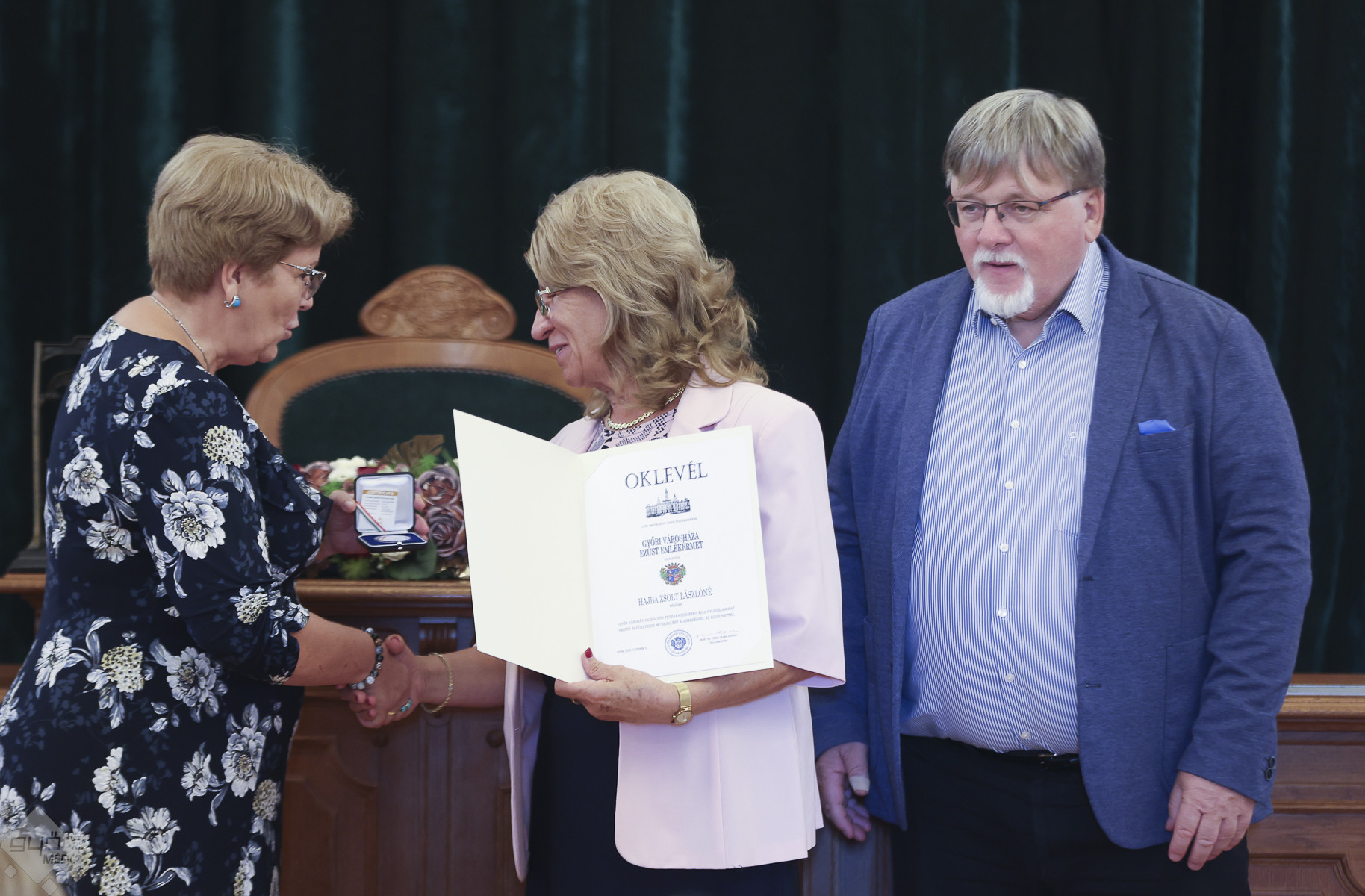 A rendezvény elismerések átadásával folytatódott. A polgármester a Győri Városháza Ezüst Emlékérmét adományozta huszonkilenc főnek a közösségért végzett munkájukért. A kitüntetéseket dr. Dézsi Csaba András polgármester és dr. Pergel Elza alpolgármester nyújtotta át a díjazottaknak.