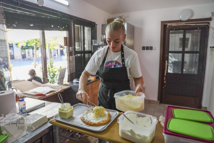 „Mindenből a minőségit igyekszem beszerezni! A fokhagymát környékbeli termesztőktől veszem, tejfölből csakis a 20 százalékost használom, sajtból sem növényit, hanem olyat, ami tényleg tejből készült. Figyelek a fokhagymás „kencére” is, mert tudom, hogy sokan vízbe, vagy rossz minőségű olajba keverik bele. Én ellenben olívaolajba szóróm a hibátlan gerezdeket, majd botmixerrel vegyítem, így egy finom, kenhető állagú krémet kapok, amiről nagyon jó visszajelzések érkeznek. Egyébként a sima, fokhagymás lángosból kérnek legtöbbet a vendégeim.”