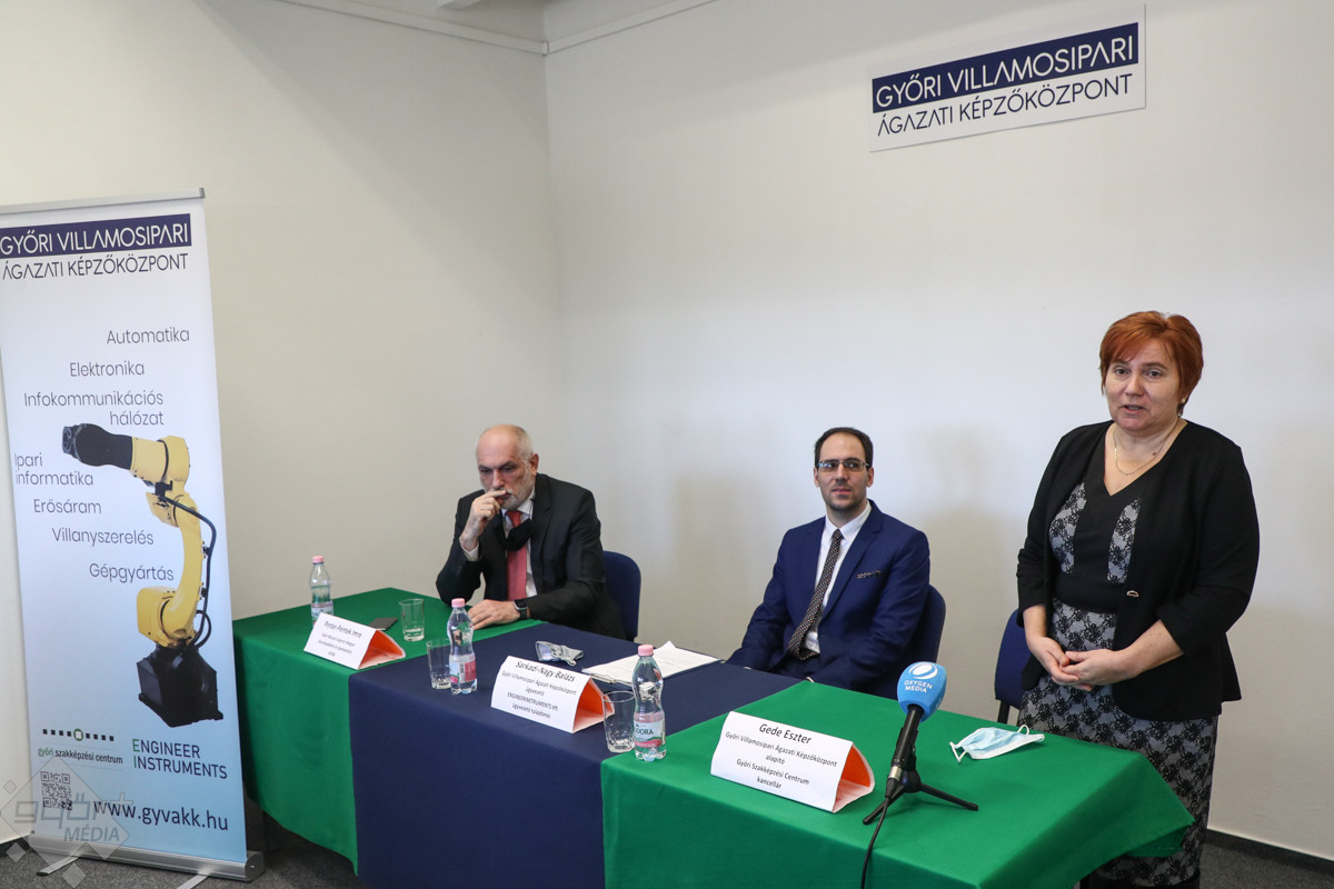 Gede Eszter, a Győri Szakképzési Centrum kancellárja, mint a Győri Villamosipari Ágazati Képzőközpont egyik alapítója hangsúlyozta, a képzőközpontban egyedülálló módon a minőségi duális képzést valós ipari munkakörnyezetben tapasztalhatják meg a tanulók.