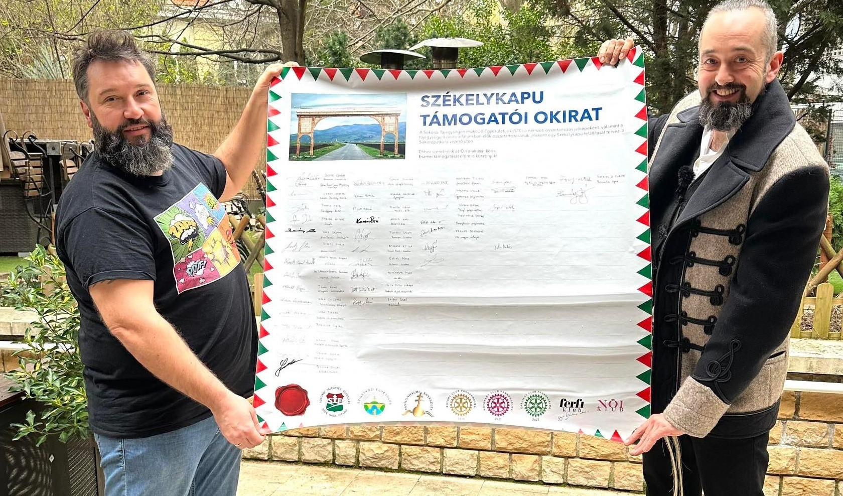 ,,Készült egy támogatói okirat, amelyet nagyon sokan aláírtak. Elsőként Böjte Csaba testvér, aki a kapu fővédnöke is, illetve Hortobágyi T. Cirill pannonhalmi főapát. Az aláírók között van Farkas Bertalan űrhajós, Csókay András professzor és dr. Dézsi Csaba András polgármester, illetve az énekesek közül Mező Misi és Nagy Feró is” – mondta Baranyay Alfréd.