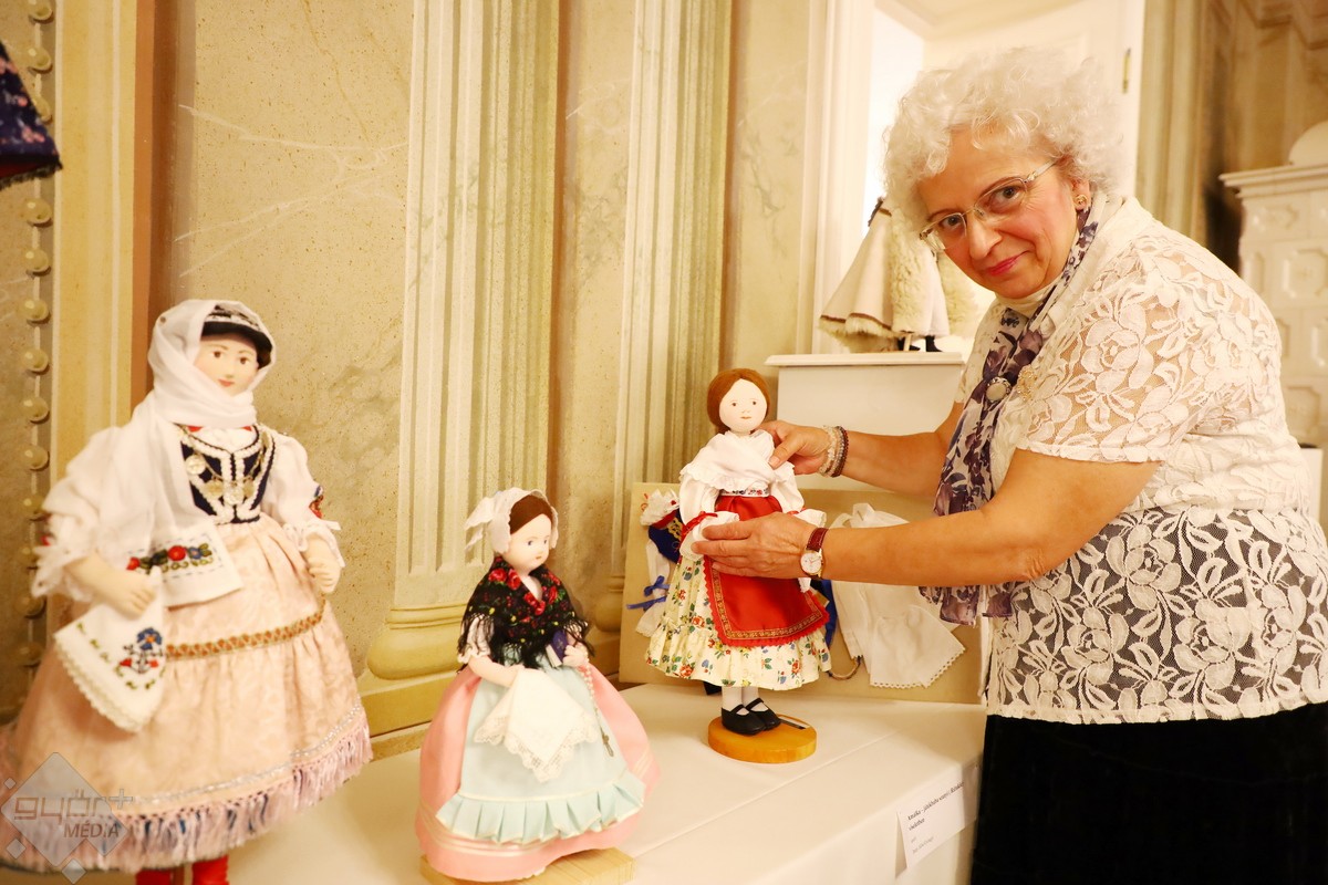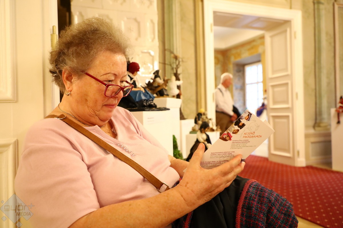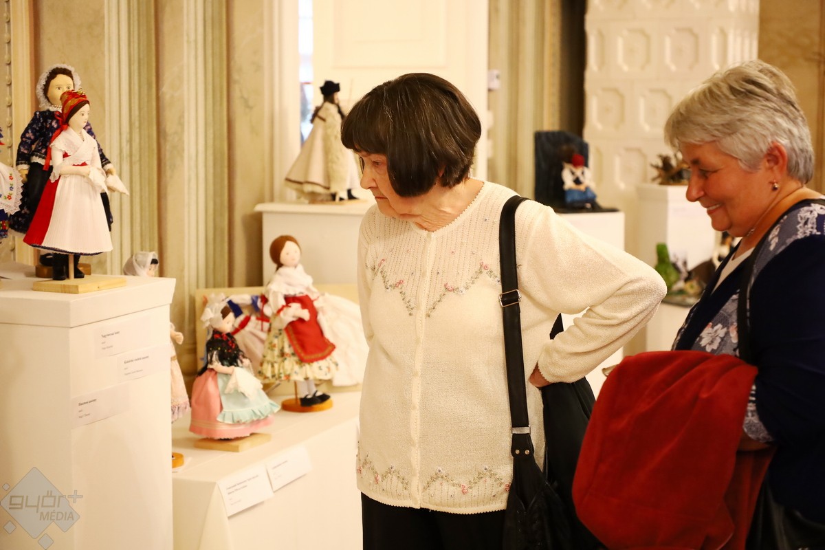 A Táti Porcelán Babaklub „Séta az 1800-as évek elején” című életképet mutatja be a győri közönségnek. Gyebnár Jánosné pedig 17 babáját és 20 mackóját hozta el a tárlatra.