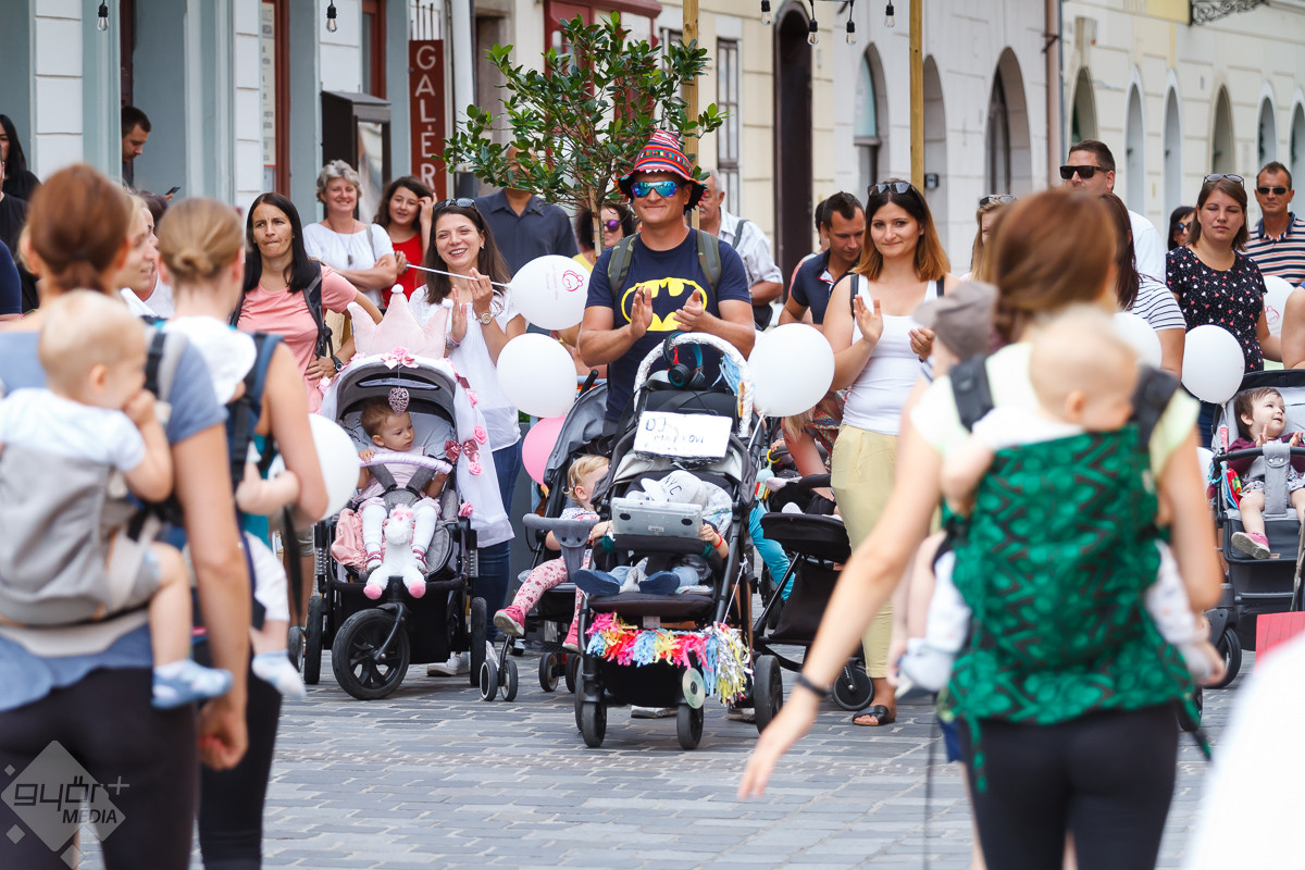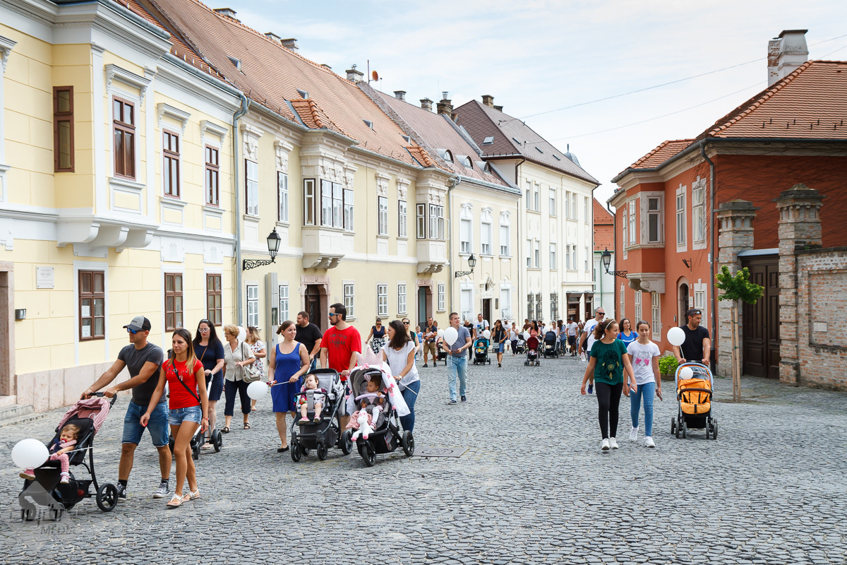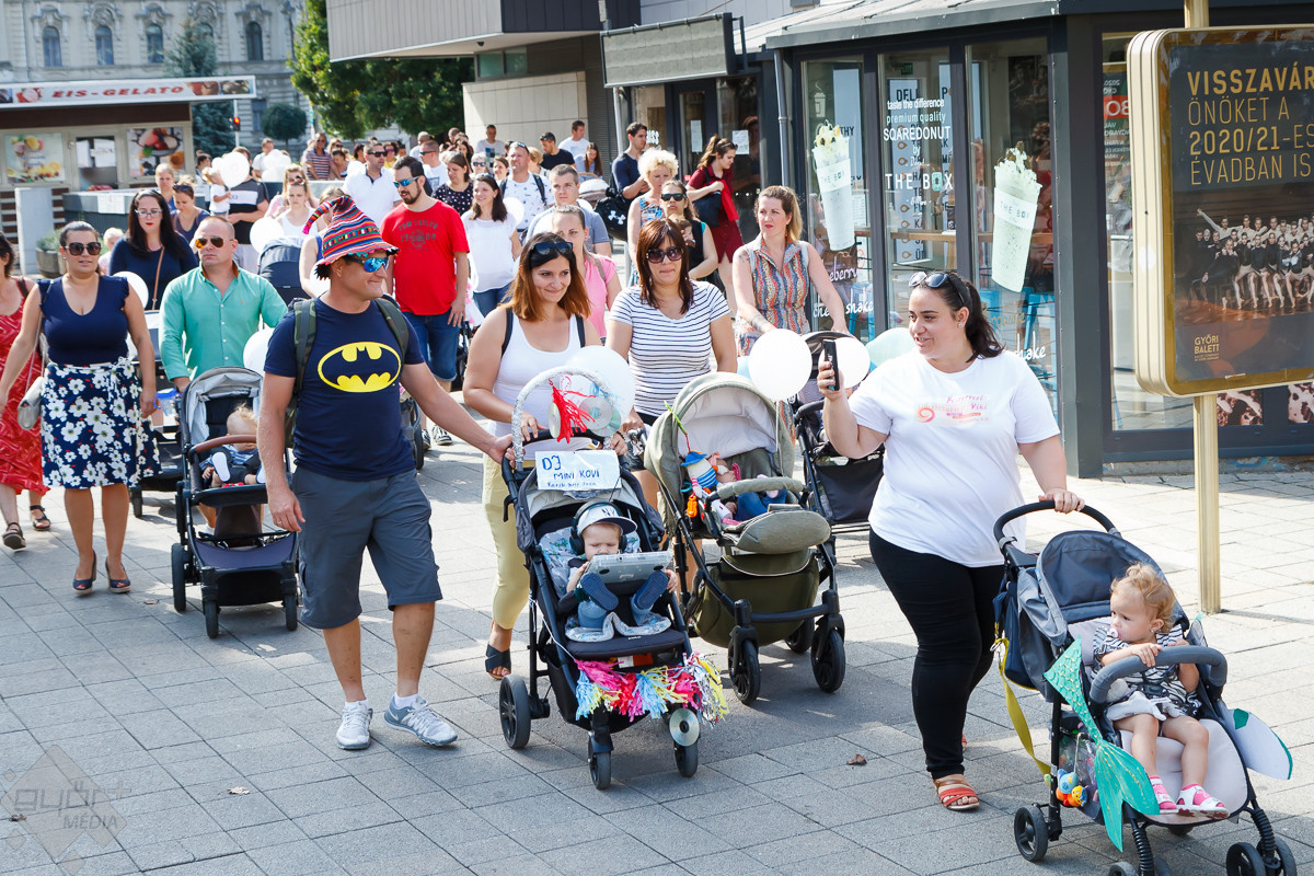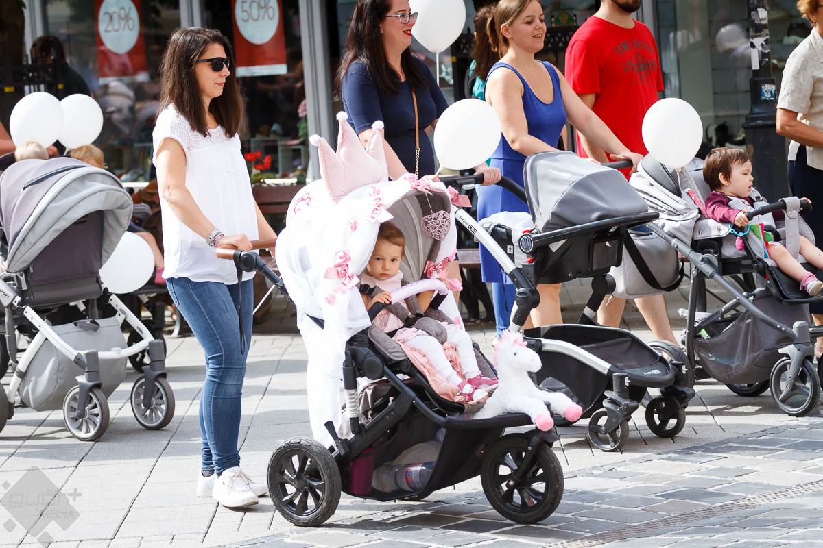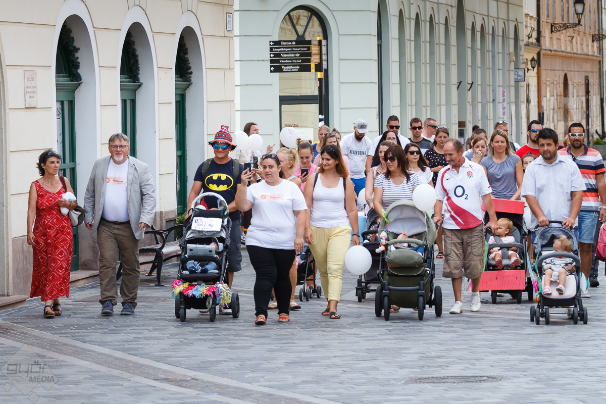 Vidám és színes forgataggá vált a több száz résztvevővel induló családok alkotta séta, feldíszített babakocsik, bennük gyönyörű kisgyermekek, kezükben színes lufival. A menet élén Mini Kovi, a város legfiatalabb dj-jének apró keverőpulttal is felszerelt hangosítójából szólt a zene, Kovács-Veszprémi Viktória és a dj apuka, Zsolt 8 hónapos kisfia már mondhatni születése után édesapja nyomdokába lépve szolgáltatta a számokat ahhoz a rögtönzött Király utcai bemutatóhoz is, ahol anyukák tartottak – hátukon babahordozóban ülő gyermekeikkel – táncbemutatót. A nem mindennapi látványt nagy tapssal díjazták a járókelők éppúgy, mint a teraszokon ülő városiak vagy turisták, miközben a büszke édesapák telefonjaikkal fényképeket vagy videókat készítettek a párjukról és gyermekük első nyilvános fellépéséről.