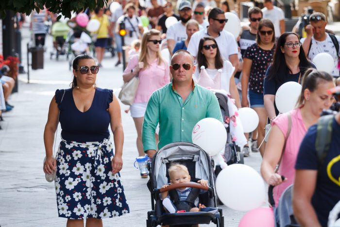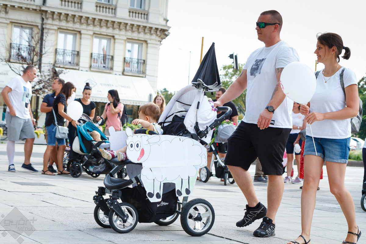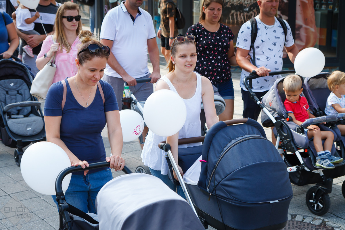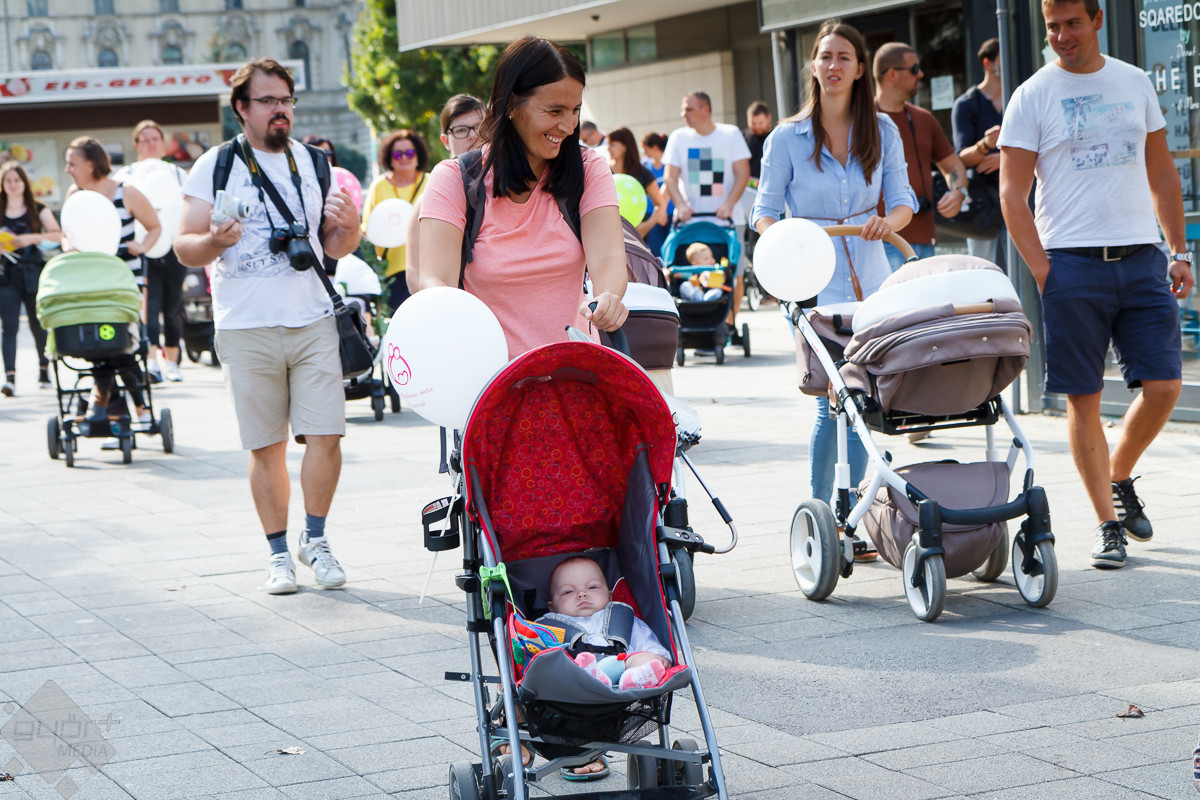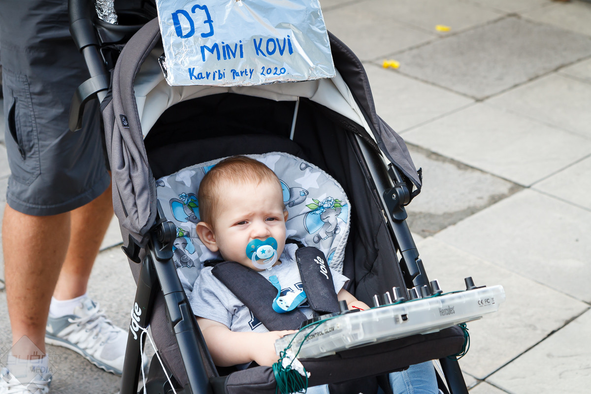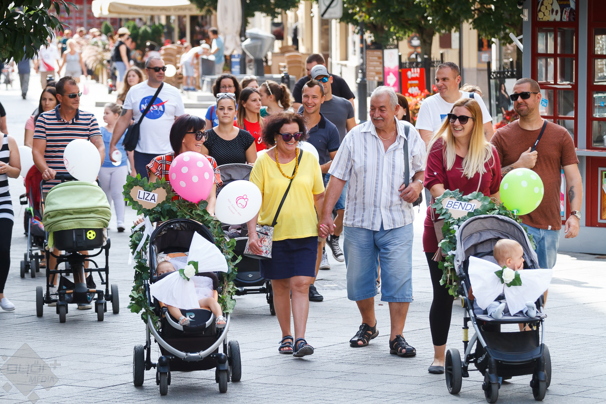 Vidám és színes forgataggá vált a több száz résztvevővel induló családok alkotta séta, feldíszített babakocsik, bennük gyönyörű kisgyermekek, kezükben színes lufival. A menet élén Mini Kovi, a város legfiatalabb dj-jének apró keverőpulttal is felszerelt hangosítójából szólt a zene, Kovács-Veszprémi Viktória és a dj apuka, Zsolt 8 hónapos kisfia már mondhatni születése után édesapja nyomdokába lépve szolgáltatta a számokat ahhoz a rögtönzött Király utcai bemutatóhoz is, ahol anyukák tartottak – hátukon babahordozóban ülő gyermekeikkel – táncbemutatót. A nem mindennapi látványt nagy tapssal díjazták a járókelők éppúgy, mint a teraszokon ülő városiak vagy turisták, miközben a büszke édesapák telefonjaikkal fényképeket vagy videókat készítettek a párjukról és gyermekük első nyilvános fellépéséről.
