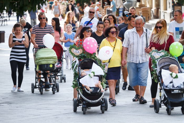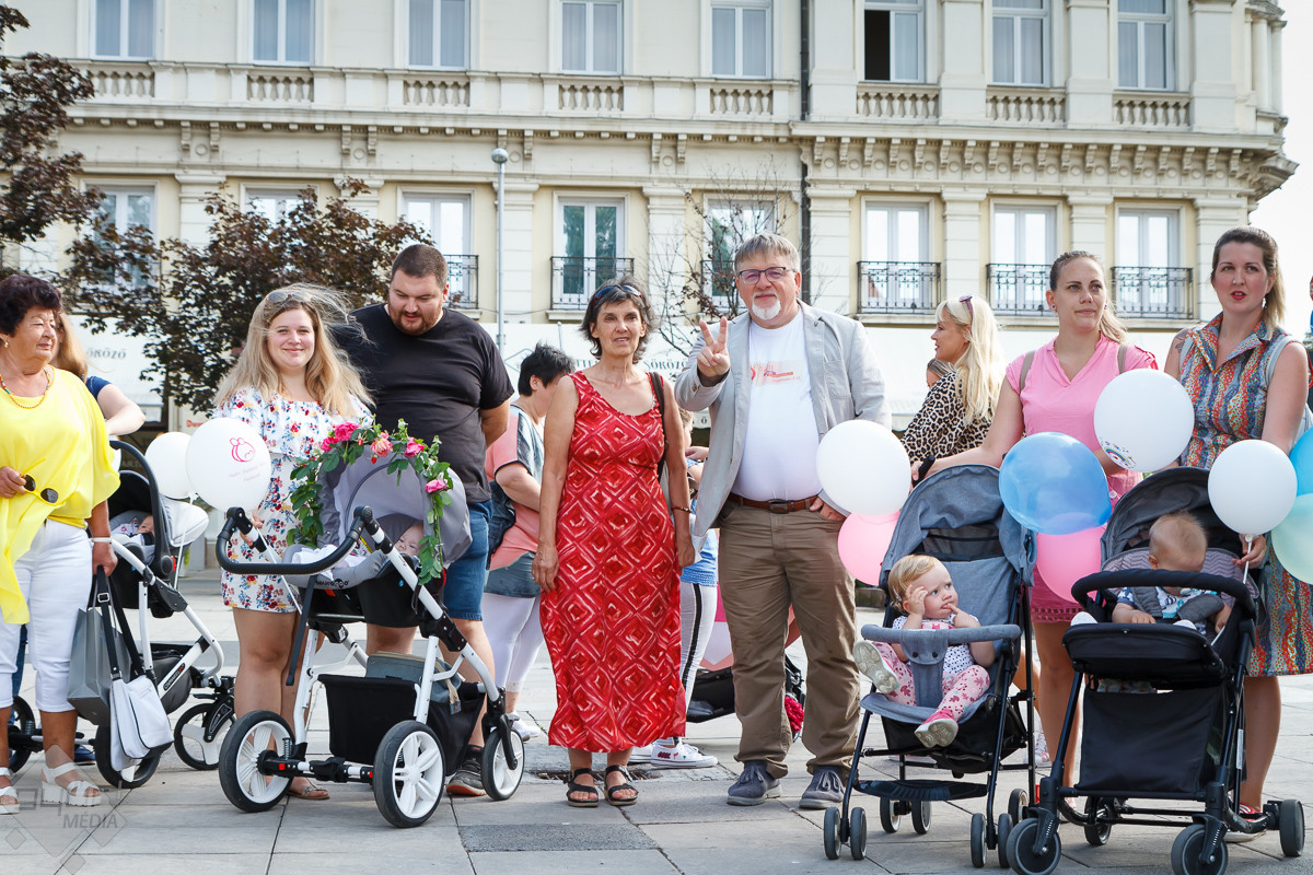 Gyönyörű nyár végi délelőttön indultak belvárosi körsétára a babakocsival érkező kisgyermekes családok. Megható volt látni, hogy többségében apukák tolták gyermeküket végig a Megyeháza térről indulva a Baross úton át, a Jedlik utca érintésével a Káptalandombra, majd a Generációk Háza volt a végállomás, ahol hivatalosan is megnyitotta a város polgármestere, dr. Dézsi Csaba András az egyhetes, hagyományteremtő céllal szervezett fesztivált.