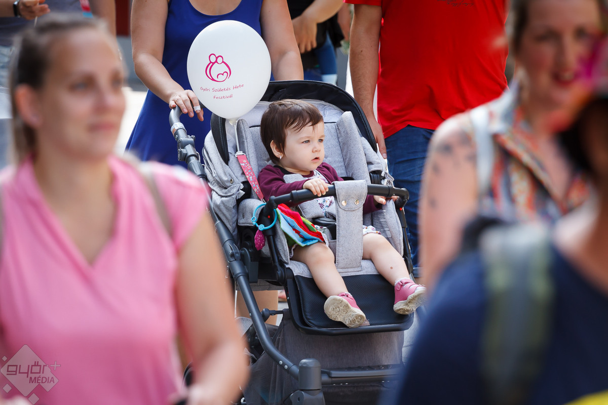 Látványos babakocsis felvonulással nyílt meg vasárnap délelőtt a belvárosban az I. Győri Születés Hete Fesztivál. Az egy héten át - szeptember 6-12 között - tartó, sokszínű programokat felvonultató rendezvénysorozat célja, hogy a párkapcsolattal, fogantatással, várandóssággal, szüléssel, gyermekágyas időszakkal, kisgyermekgondozással kapcsolatban hiteles információkat adjon az érdeklődőknek, népszerűsítse a témához kapcsolatos klubokat, foglalkozásokat, intézményeket és szolgáltatásokat.