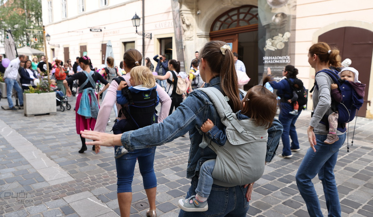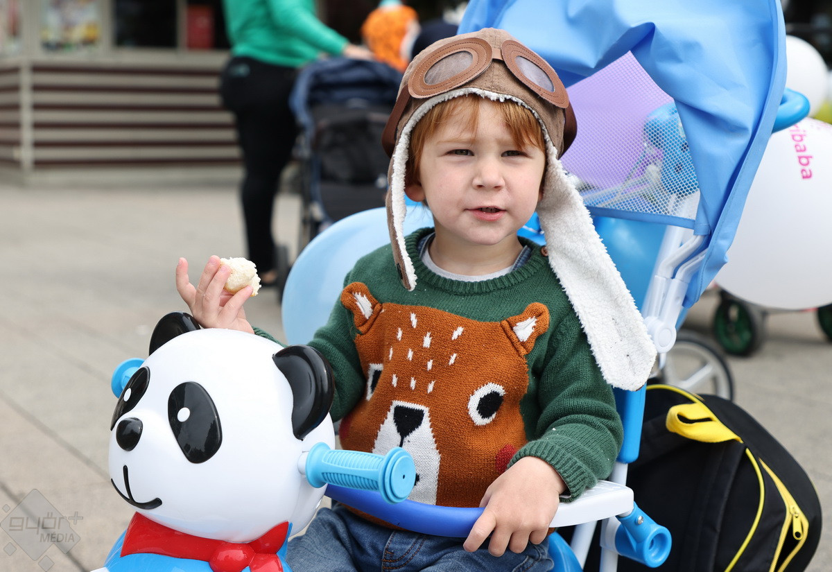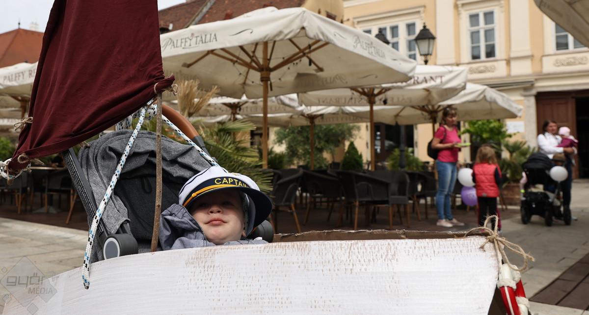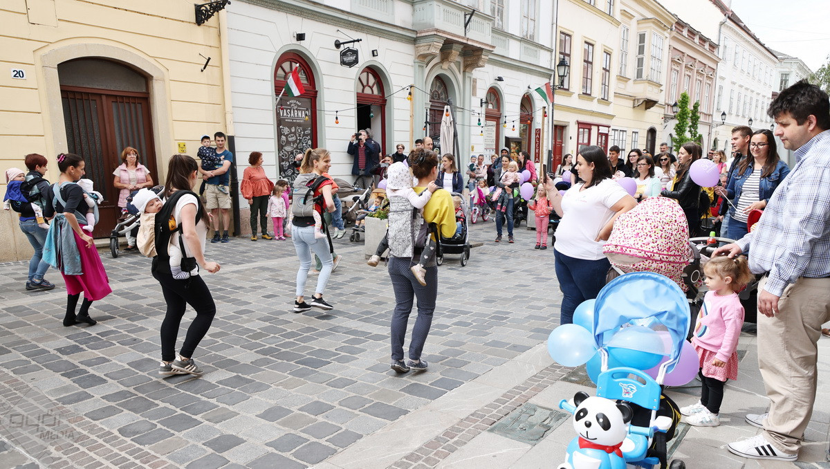 Babakocsikat toló szülők töltötték meg a Baross utcát vasárnap délelőtt, a felvonulással kezdetét vette az egy hétig tartó Győribaba Fesztivál.