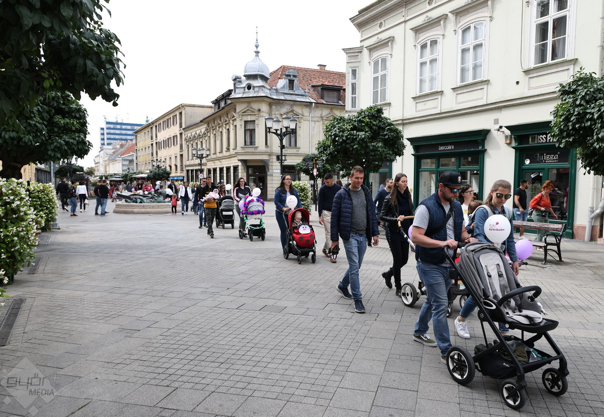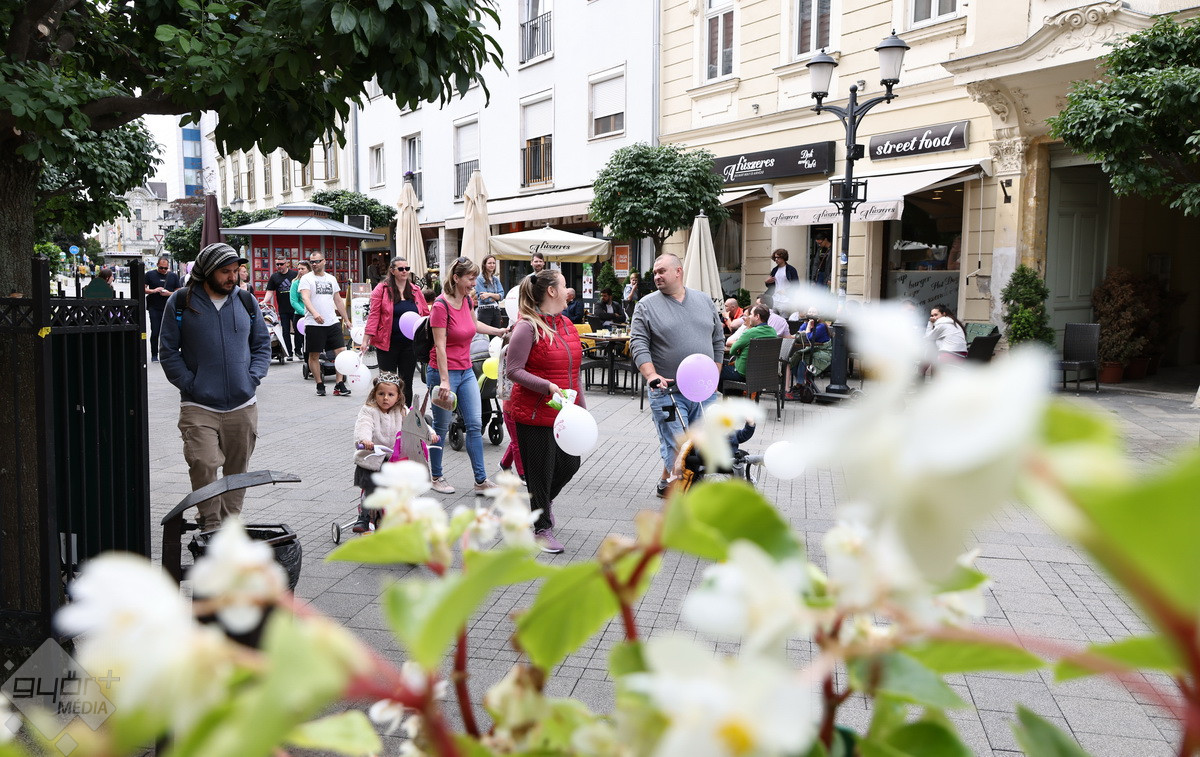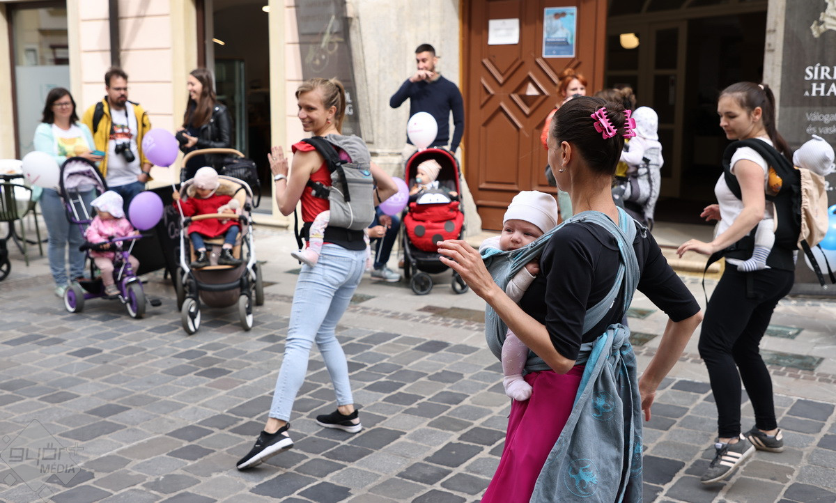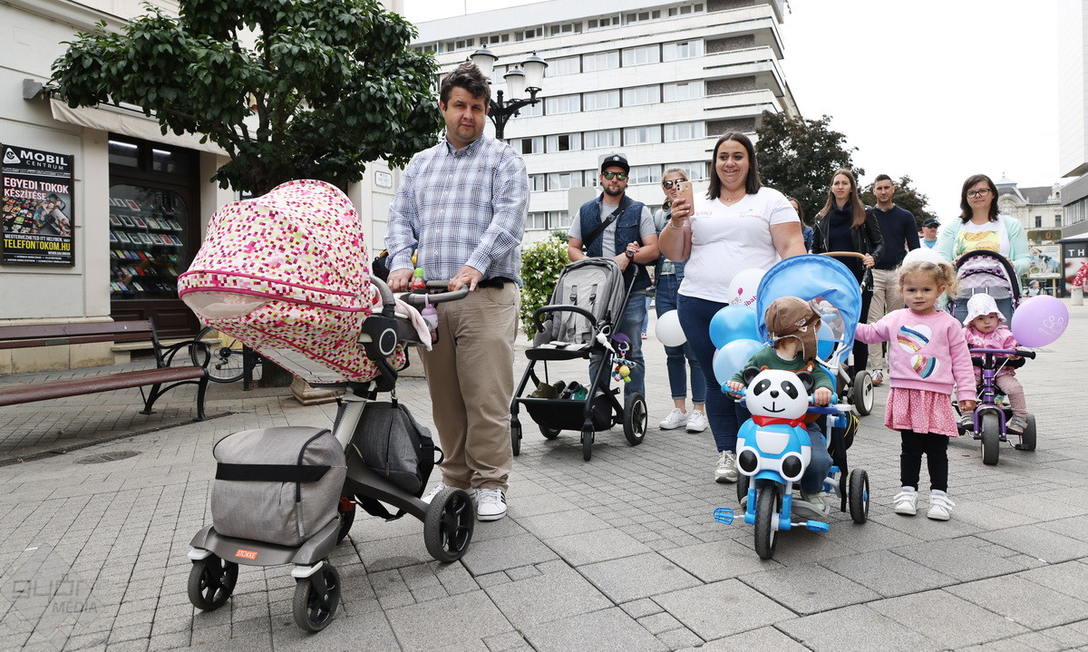 Babakocsikat toló szülők töltötték meg a Baross utcát vasárnap délelőtt, a felvonulással kezdetét vette az egy hétig tartó Győribaba Fesztivál.