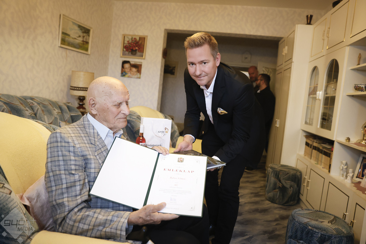 „Nagy örömmel jöttem Babos Vilmos bácsit felköszönteni Adyváros képviselőjeként. Elhoztam Orbán Viktor miniszterelnök ajándékát, egy emléklapot. Én is készültem egy kis meglepetéssel, valamint átadtam dr. Dézsi Csaba András polgármester ajándékát és jókívánságait. Vilmos bácsi jó egészségnek örvend, fiatalosan tartja magát. Szabóként dolgozott, bennünket is elegánsan, a saját maga által készített ruhában fogadott. Manapság sajnos egyre kevesebben vannak, akik férfiként a szabó szakmát választják, pedig jó lenne életben tartani ezt a hagyományos foglalkozást. Öt évvel ezelőtt itt voltam a 90. születésnapon, és azzal váltunk el, hogy a 100.-on ismét találkozunk” – hangsúlyozta az alpolgármester.