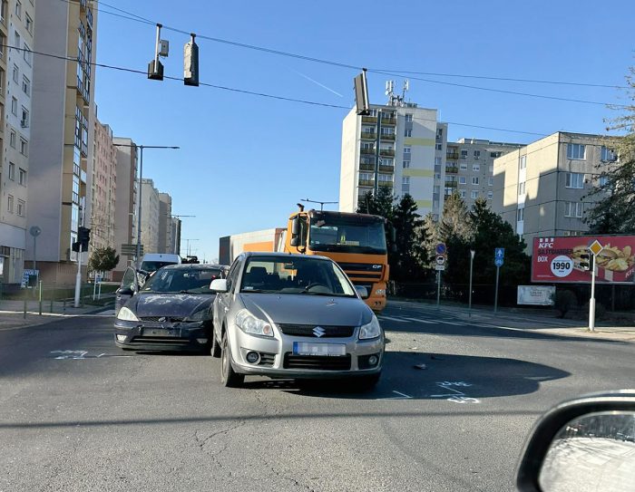 A karambol a jelzőlámpás kereszteződésben történt. Információnk szerint a balesetben két személyautó érintett. A sérült járműveket kerülni kell a helyszínen, ami lassítja a forgalmat. A helyszínen dolgoznak a rendőrség munkatársai.