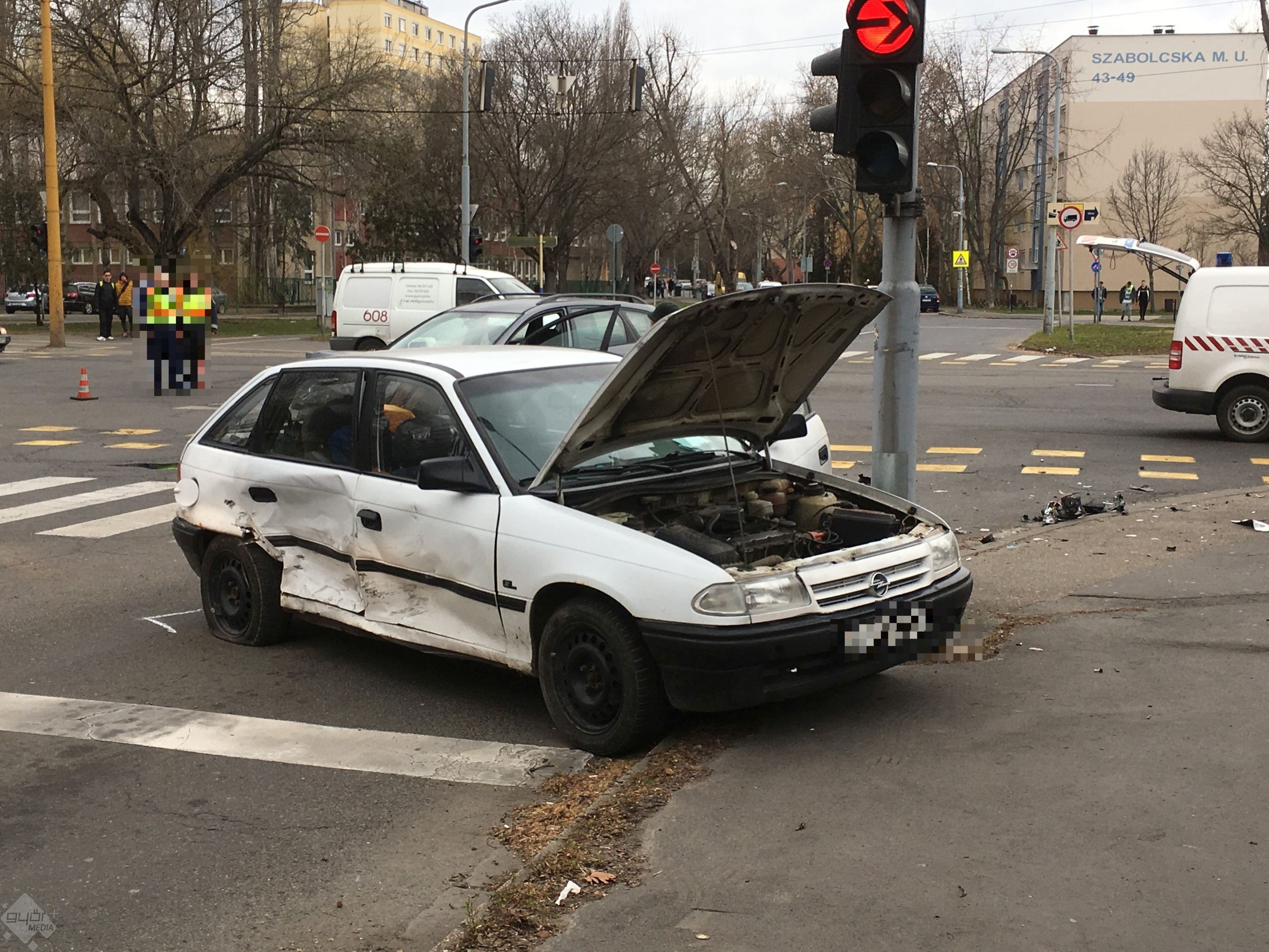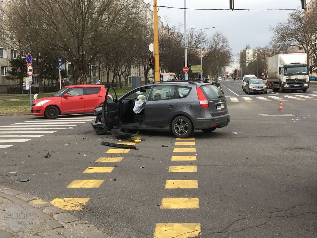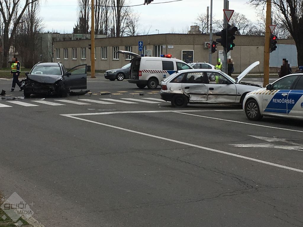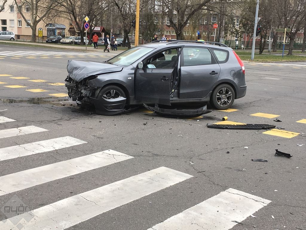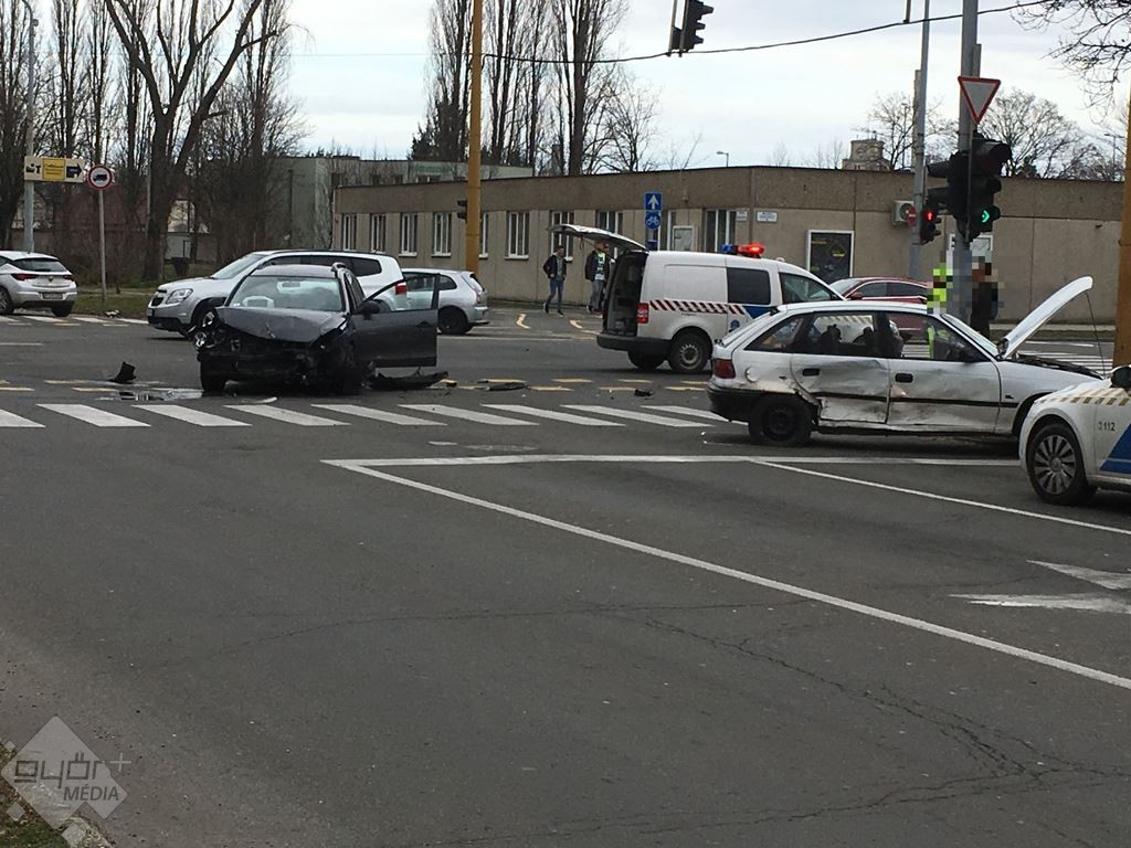 Két személyautó karambolozott Győrben, a Szigethy Attila úton szerda délelőtt.