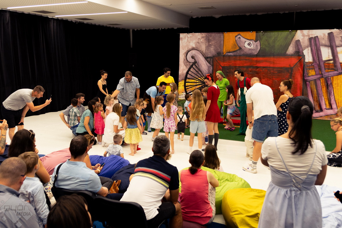 A nyuszi – már csak így becézték a próbafolyamat végén legújabb gyermekdarabjukat a Győri Balett művészei. A társulat a táncfesztiválon mutatta be a Pannónia Filmstúdió ikonikus rajzfilmjének színpadi adaptációját. A propeller fülekkel rendelkező bájos segítő, a vadóc Kriszta, az álmodozó Menyus, a butuska Kistöfi és a rosszcsont Mozdony városunkban is meghódította a gyermekek szívét.