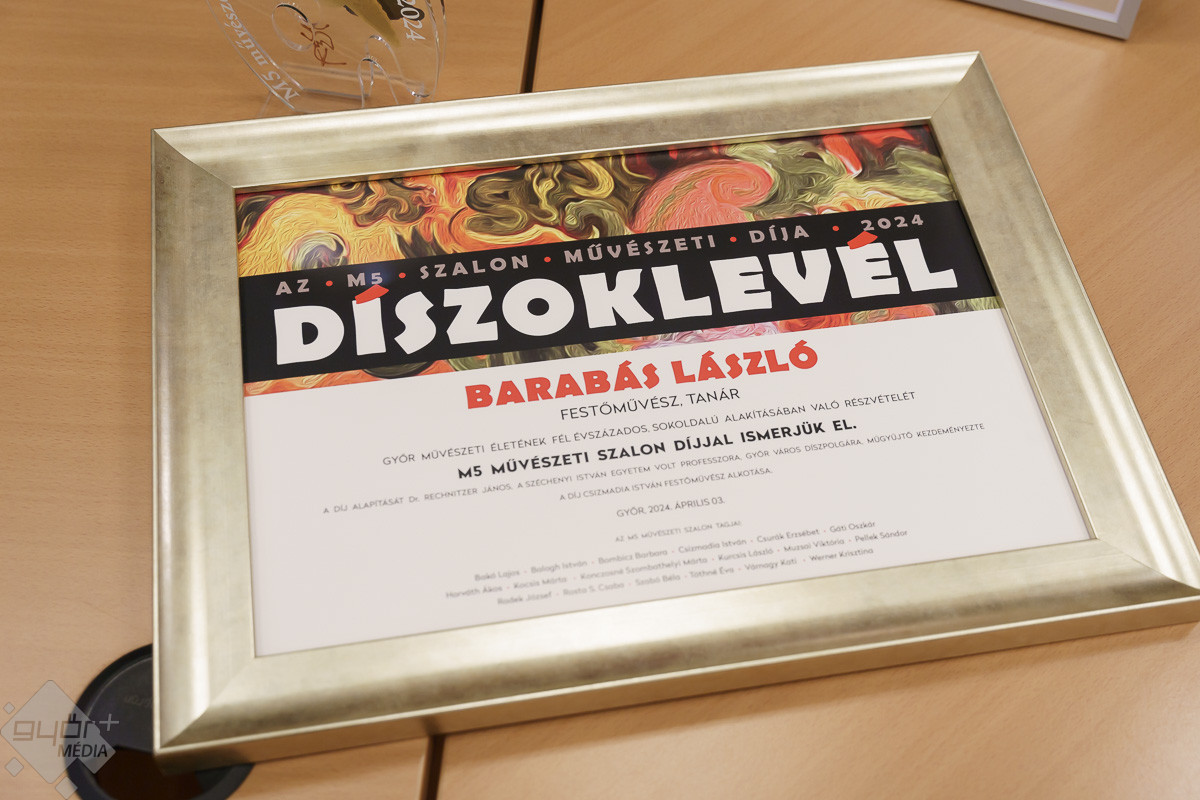 Idén április 3-án pedig átadták az M5 Művészeti Szalon-díjat. A díj alapítását még Rechnitzer János a Széchenyi Egyetem professzora , Győr Város díszpolgára, műgyűjtő kezdeményezte, de átadását már nem élhette meg.