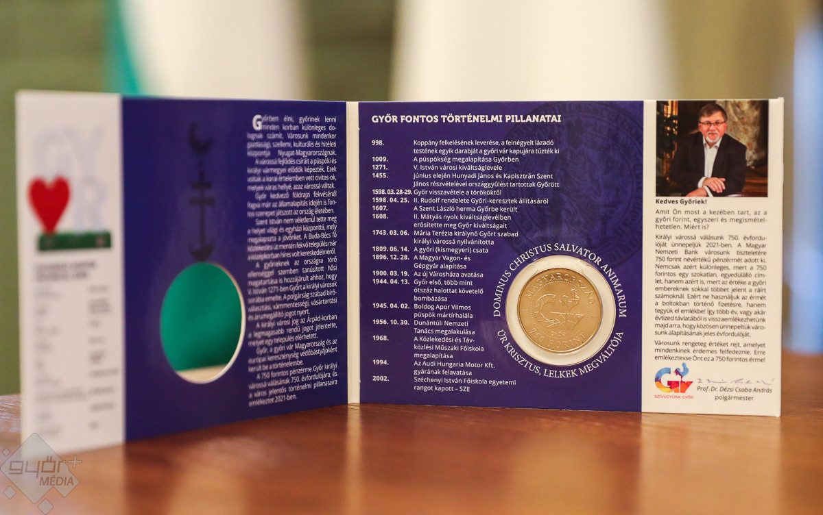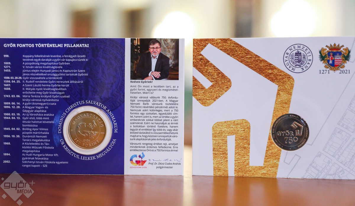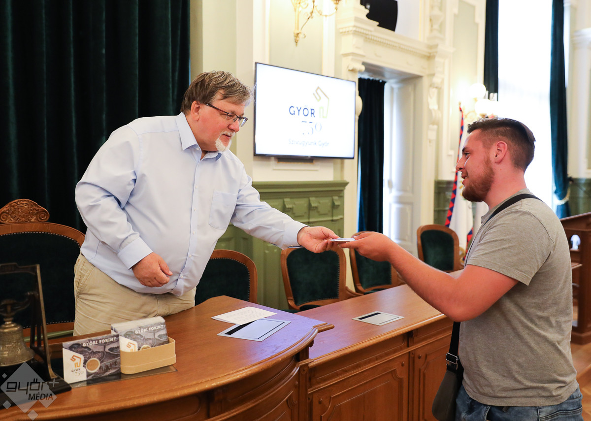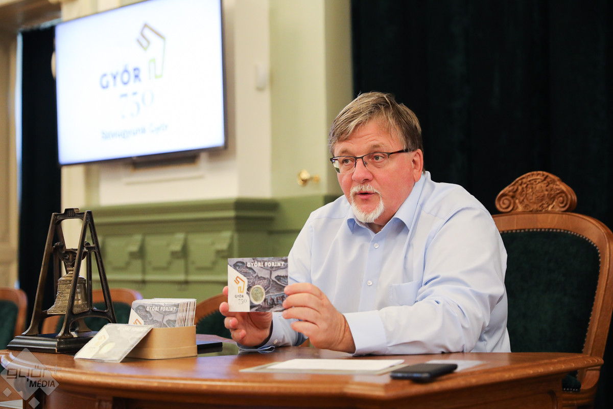 A jubileumi érmét 40 ezer példányban hozta forgalomba a bank, és ez a tény önmagában is példátlan, hisz fizetőegységként használható emlékérmekből általánosan 3 ezer darabot szoktak kiadni. A polgármester elmondta, hogy ebből a kontingensből a város megvásárolt egy jelentős tételt, amit arra fognak felhasználni, hogy minden győri lakcímmel rendelkező húsz év alatti fiatalnak személyesen a polgármester vagy az alpolgármesterek ajándékoznak egyet-egyet.