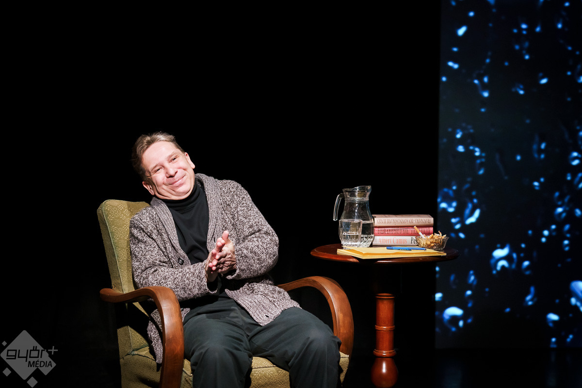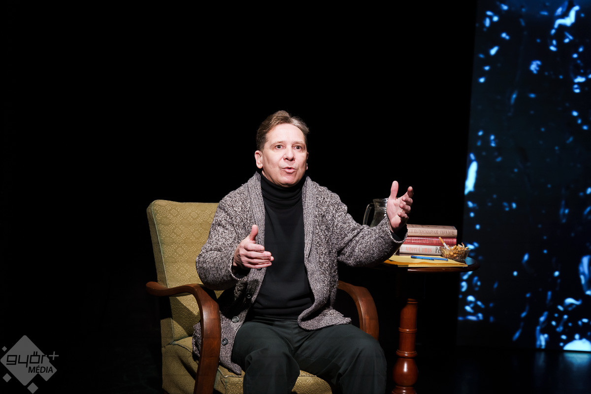 „Szeretném tudni, hogy az emberek kíváncsiak-e még. Hogy tudnak-e még egy órán keresztül figyelni. Bízom benne, hogy tudnak. Az az őrült téboly, ami most pörög körülöttünk, az egy dolog, de ennek ellenére a fiatalok podcastokat nézne és hallgatnak másfél órán keresztül. Nekik mondom, hogy jöjjenek, nagyon csípnék ezt a bemutatót” – fogalmazza meg reményeit a Győri Nemzeti Színház művésze, Posonyi Takács László.