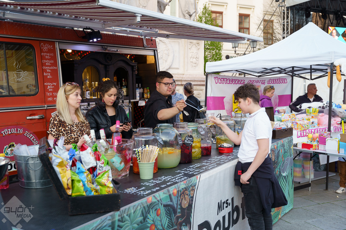 Az Iszkiri zenekar a gyerekeket csábította táncba, kicsik és nagyok egyaránt jót mulattak Győr szívében. A színpadon fellépett Sík Frida, a Red Roosters, a bulit a Bohemian Betyars zárta.