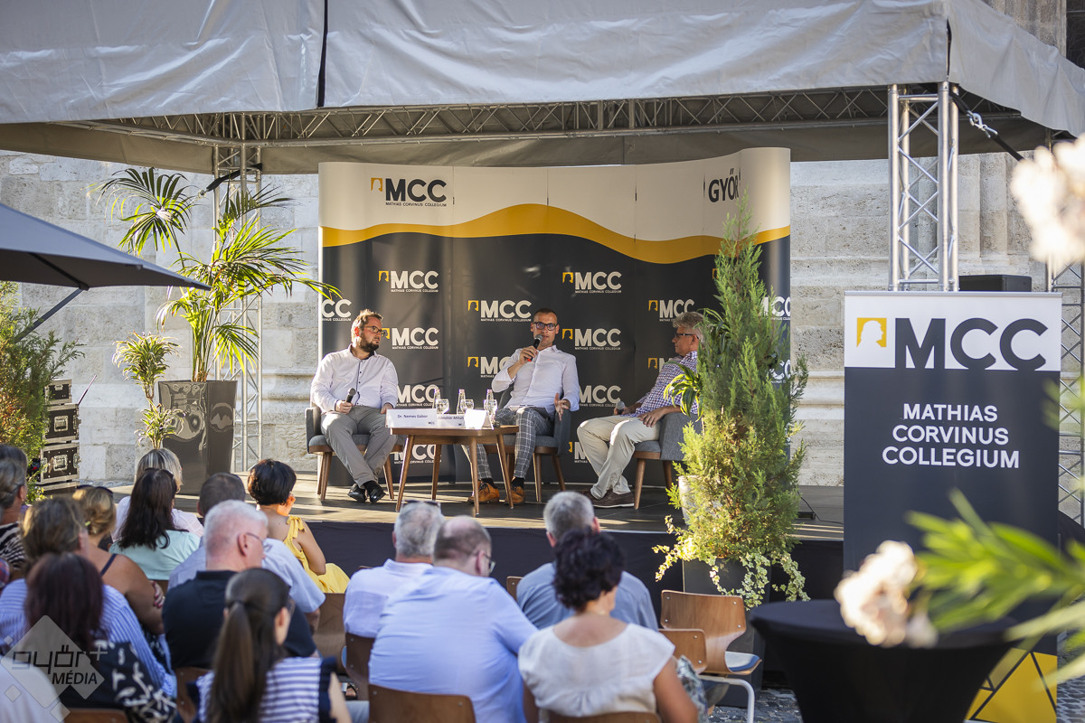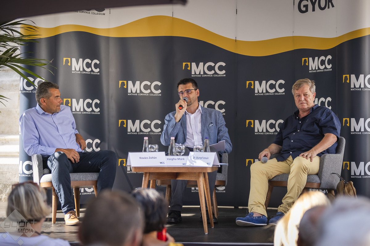 Dr. Fekete Dávid az MCC regionális képviselet-vezetője elmondta, hogy az MCC programjai nagy népszerűségnek örvendenek. Pódium beszélgetéssekkel csatlakoztunk az idei Bortörténelmi Napok programjaihoz. Három tematikus témát járunk körül, itt a gyönyörű belvárosban, a Székesegyház tövében. Olyan hangulatot akartunk ide varázsolni, mint ami az MCC Fesztiválon volt. Az első beszélgetésben Kovács Zoltán és dr. Stumpf István bor-történelemről, Babarczi Zsuzsa és Gere Andrea a női borászok karrierútjairól és dr. Nemes Gábor és dr. Dénesi Tamás pedig a szerzetesrendi és püspöki birtokok szőlészetéről beszélgetnek. Több mint 70 ember regisztrált a programunkra.