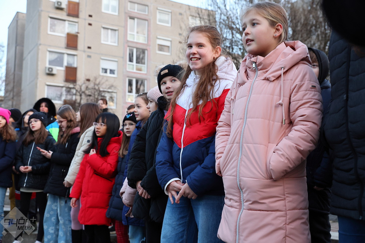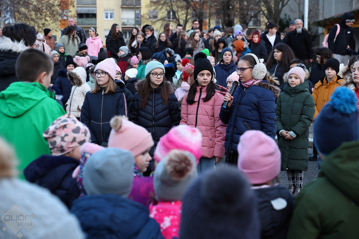 Az önkormányzat által felállított betlehemes faházhoz invitálta a marcalvárosi Kovács Margit Iskola a városrész óvodáit, az idősotthon lakóit egy kedves karácsonyi műsorra és közös karácsonyváró éneklésre.