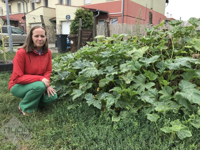 A kiskertben egy különleges levelekkel betakart nagy, zöld kupacot is észre lehet venni, ez az ún. dombágyás, amivel a parcellák tulajdonosai idén próbálkoztak először. “Ennek az az előnye, hogy nehezebben szárad ki, tehát nem kell annyit öntözni, illetve meg tudjuk növelni az alapterületet, mert nem csak az ágyás tetejébe, hanem az oldalába is ültetünk. Tökök, cukkinik vannak most benne”- zárta gondolatait Brigitta.