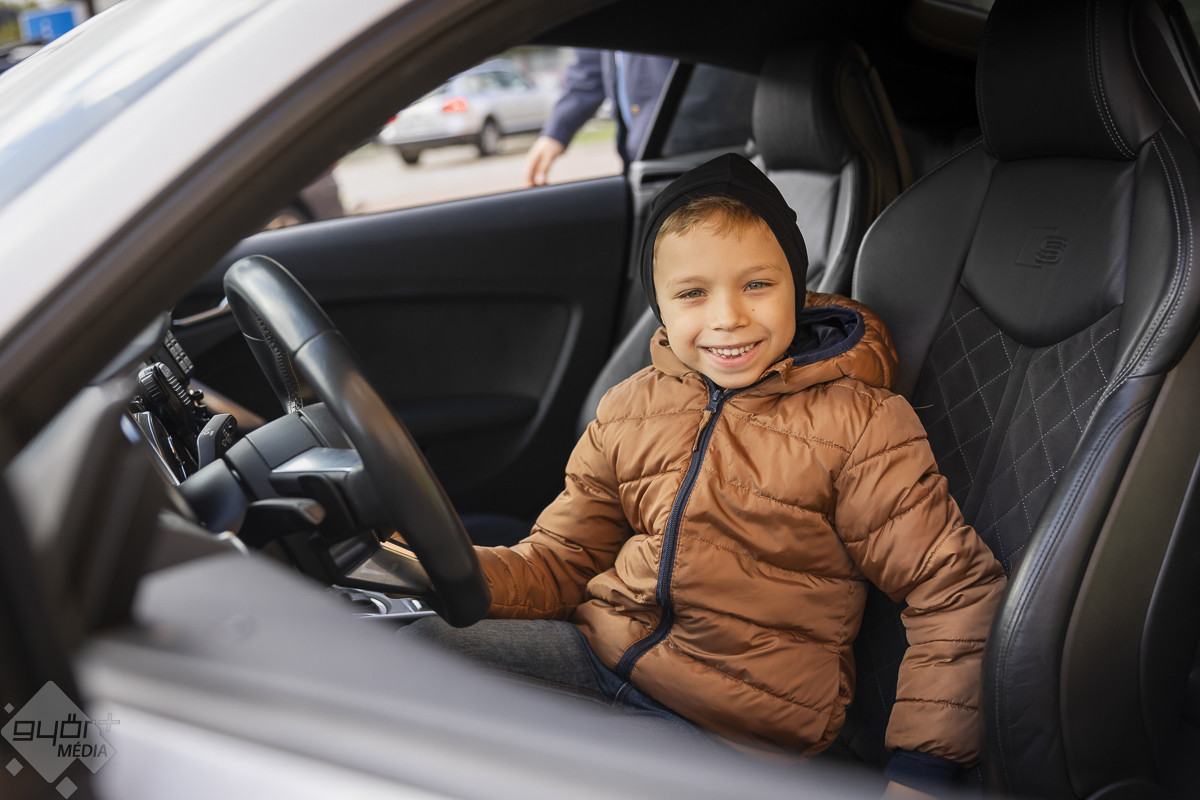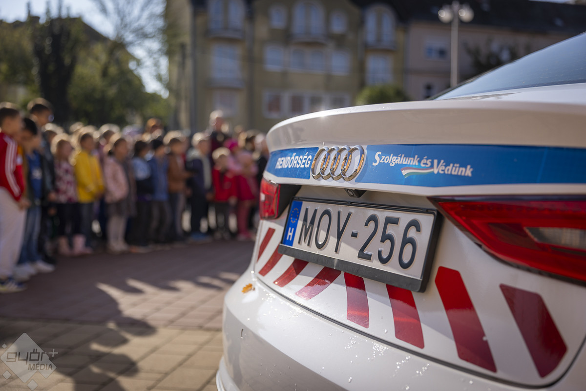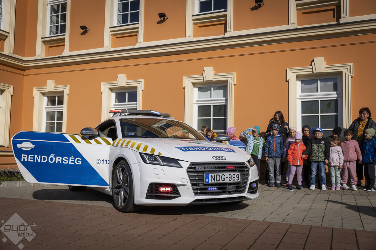 A rendőrség több autóval is érkezett, amelyet a gyermekek szintén örömmel fogadtak, különösen az Audi TT aratott nagy sikert: bátran és lelkesen huppantak bele az ülésbe és hallgatták a rendőrök ismertetőjét a rendőrautók sajátosságairól.