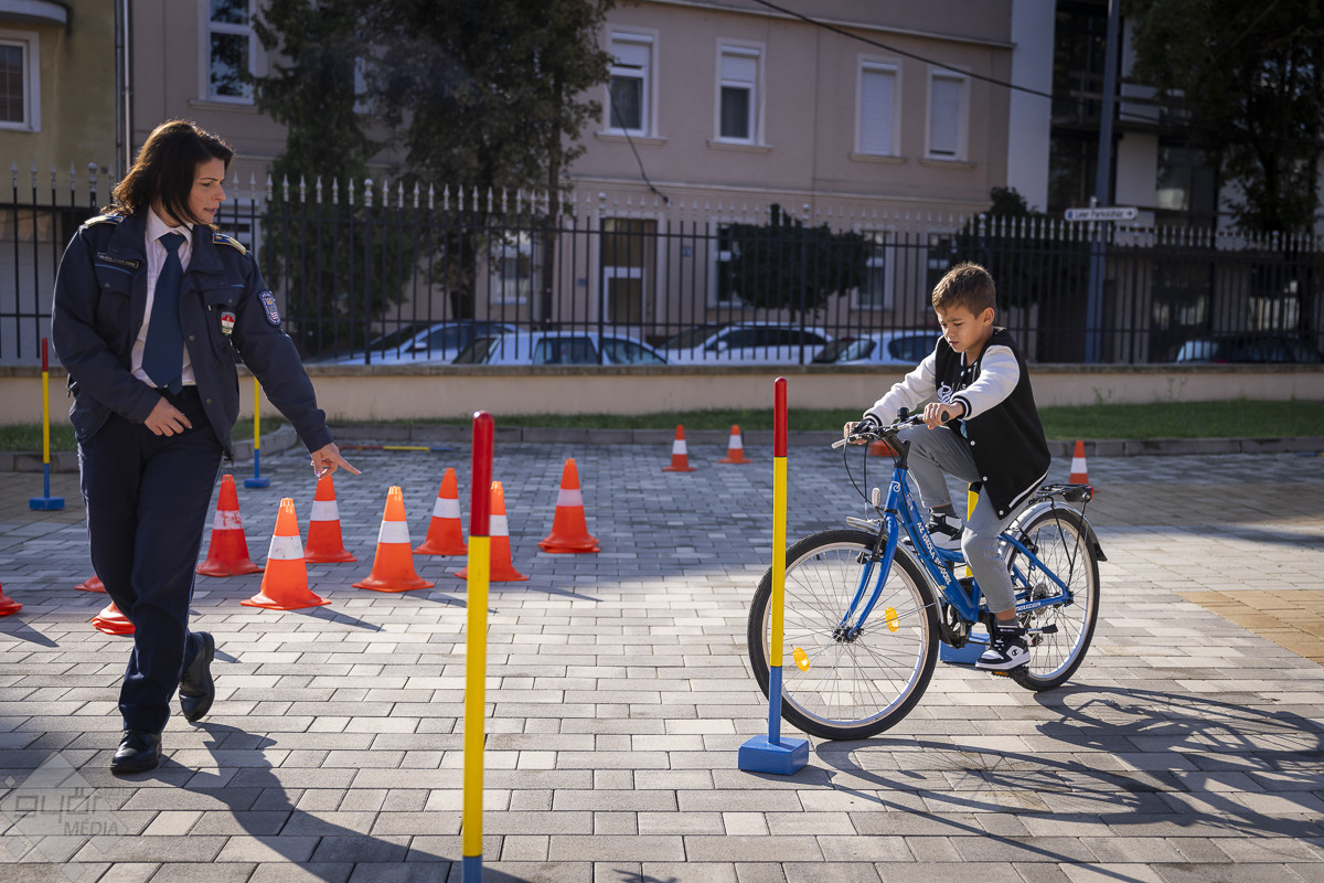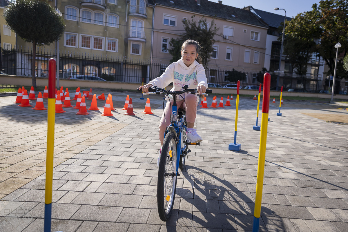 „A Biztonság Hete mindig országos rendezvény. Ezt itt a vármegyében egy kicsit továbbfejlesztettük, hiszen egy KRESZ Fesztivált is szerveztünk a gyermekeknek. Kollégáim segítségével többféle pályát és állomásokat hoztunk létre. Például közlekedési részről egy kerékpáros ügyességi és akadálypályát építettünk, ahol megmutathatjuk és elmondhatjuk a gyermekeknek a helyes közlekedés alapjait szabályait.” – ismertette az őrnagy, s valóban, a kisdiákok érdeklődve hallgatták a rendőröket, illetve örömmel próbálták ki az ügyességet és koncentrációt is igényélő pályát. Tisztán látszott, hogy nem lehet félvállról venni az akadályokat, ami nem véletlen: hiszen a valós közlekedési szituációkban is kell a figyelem, az éberség és a megfelelő döntés.