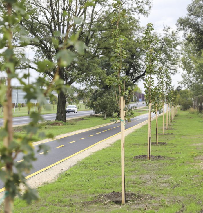 Az átadott Tatai úti kerékpárút melletti zöldterületre is figyelmet fordítottak faültetéssel és füvesítéssel, továbbá kerékpártámaszok elhelyezésére keresnek helyszínt a területen.