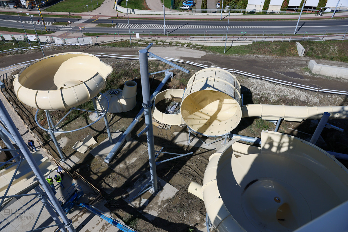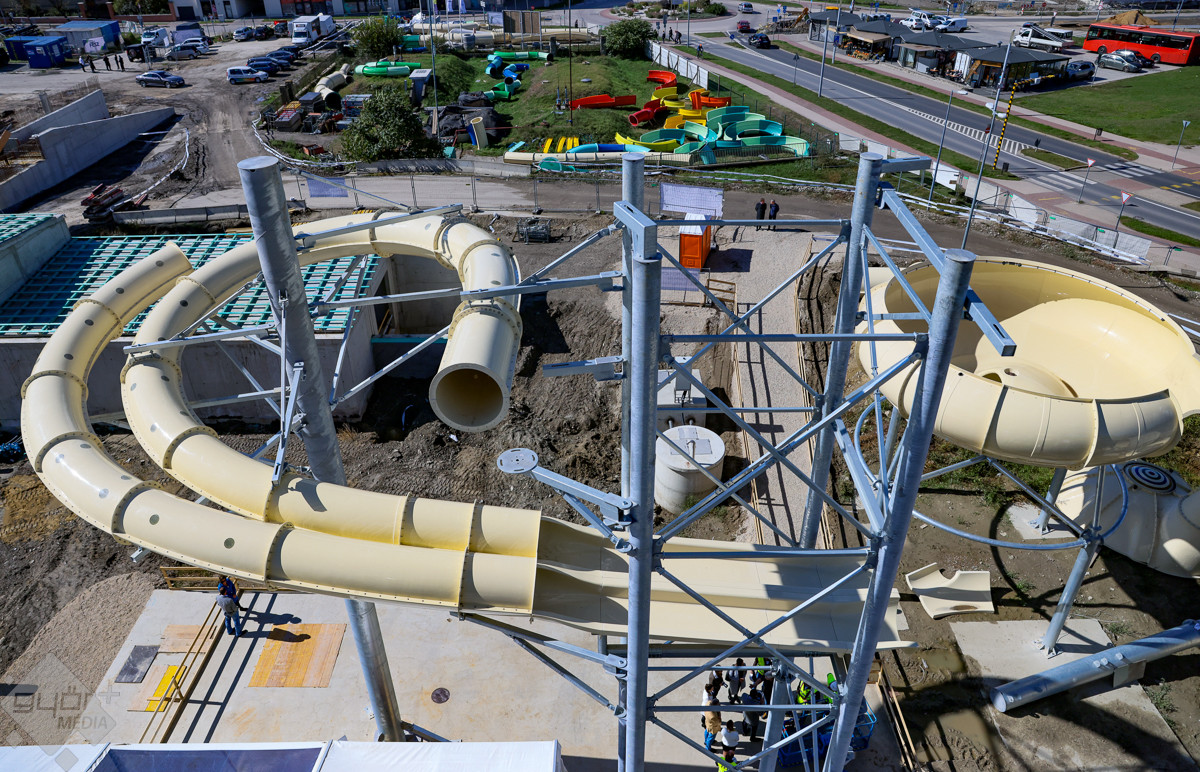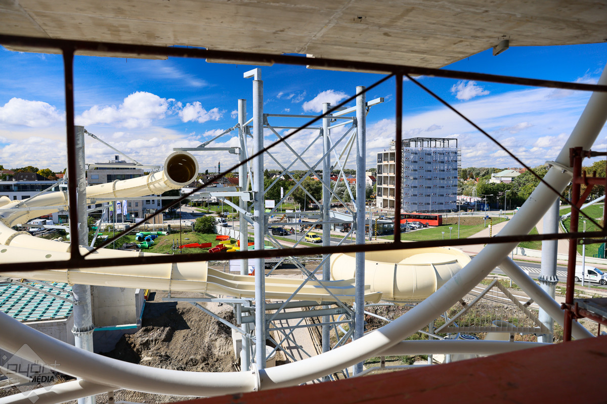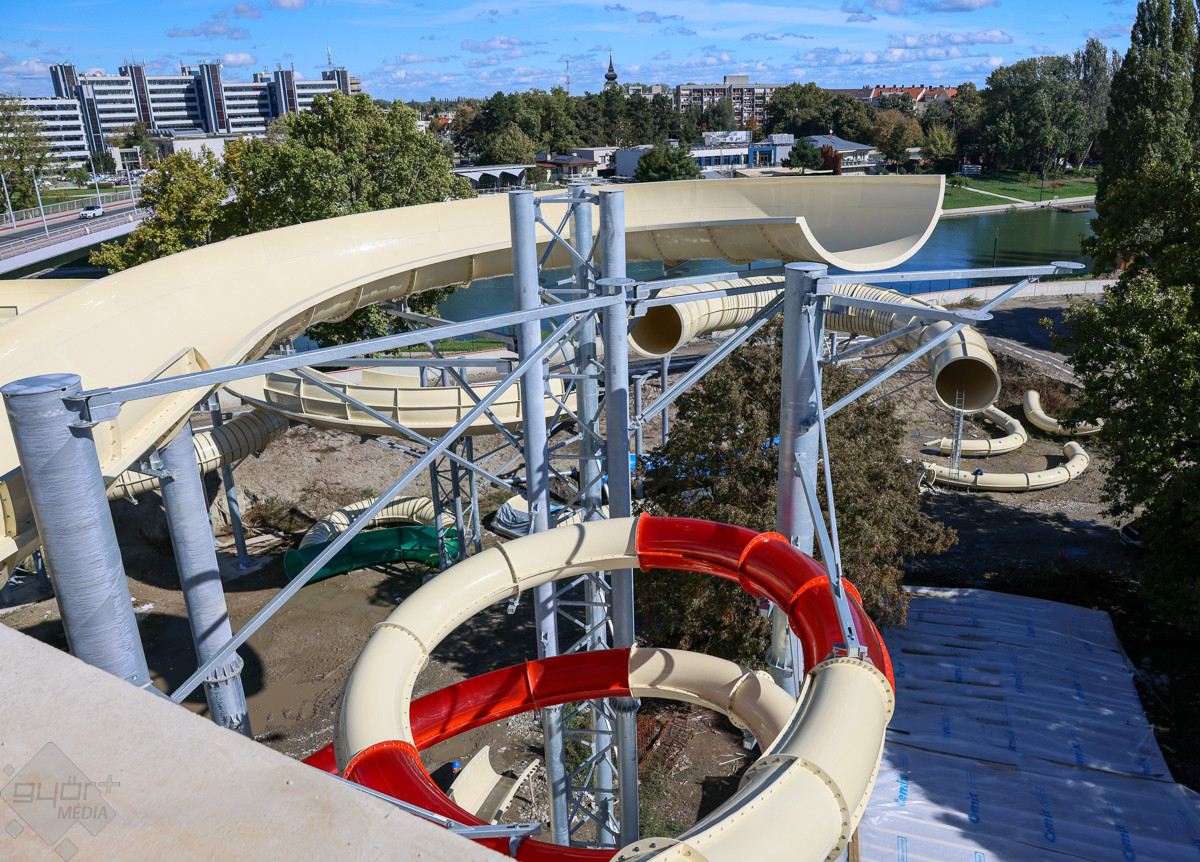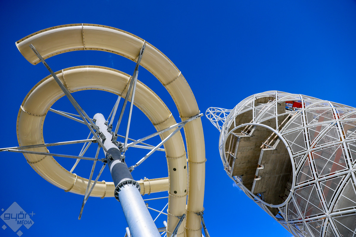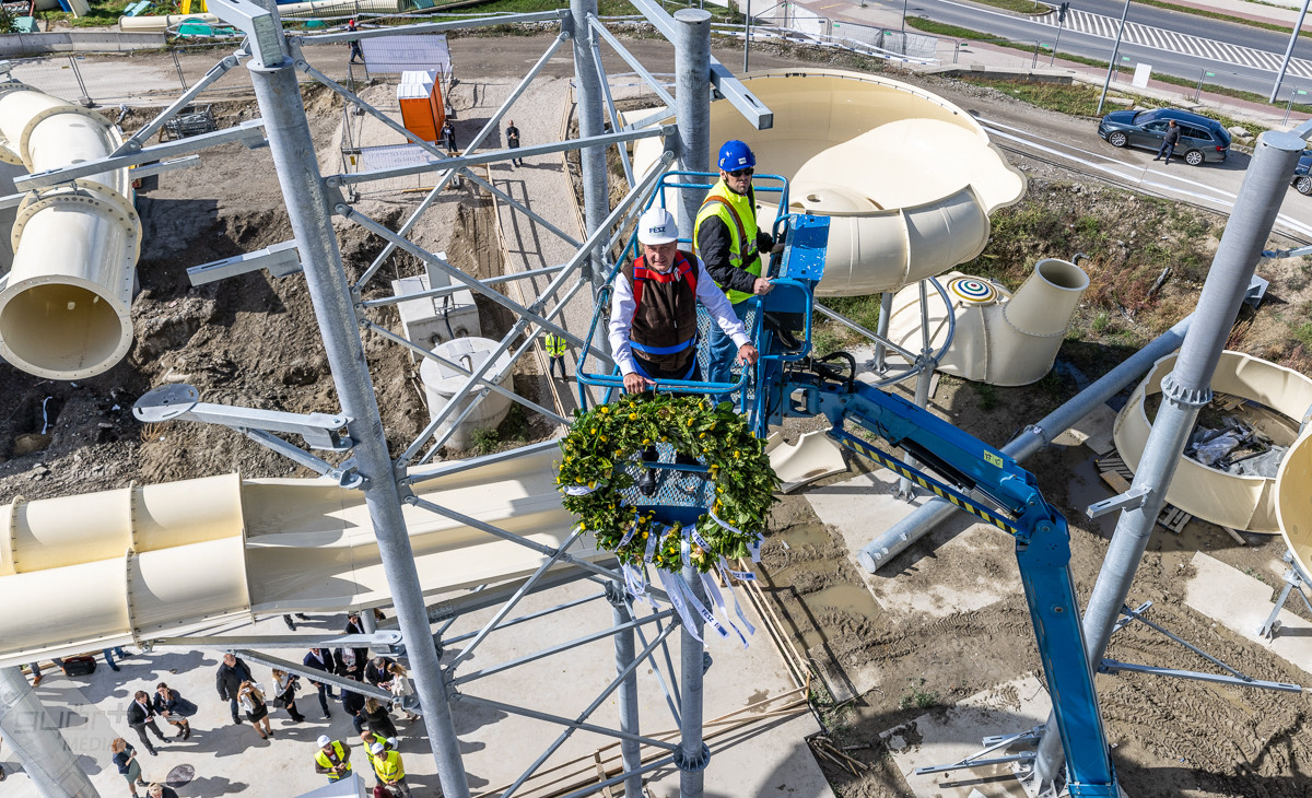 A több mint 21 milliárdos győri vízi élménypark beruházás, amely a Modern Városok Program keretében valósul meg, elérte legmagasabb pontját, amely a szódásszifon-csúszda. Ez alkalomból bokrétaünnepet tartottak szerdán.