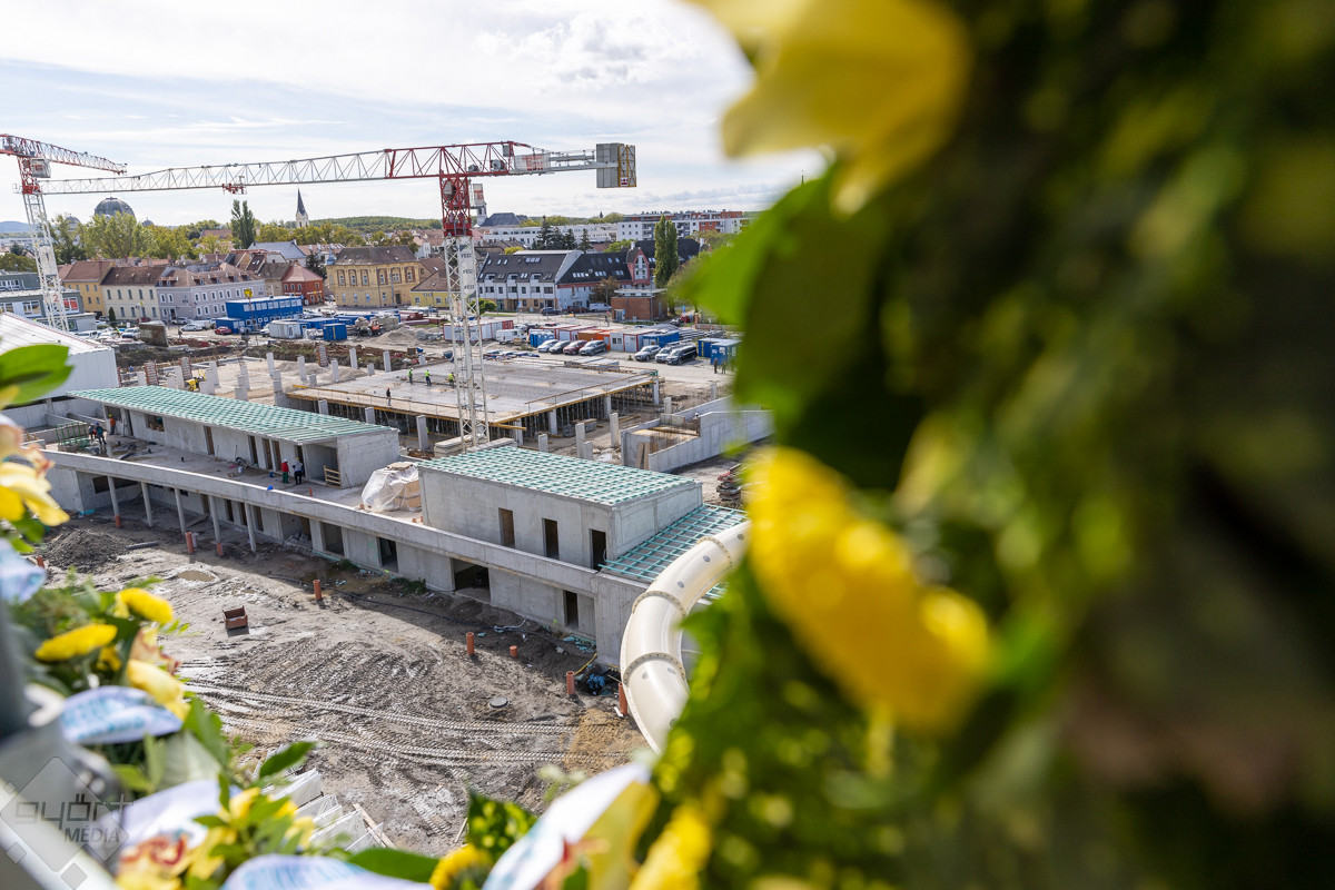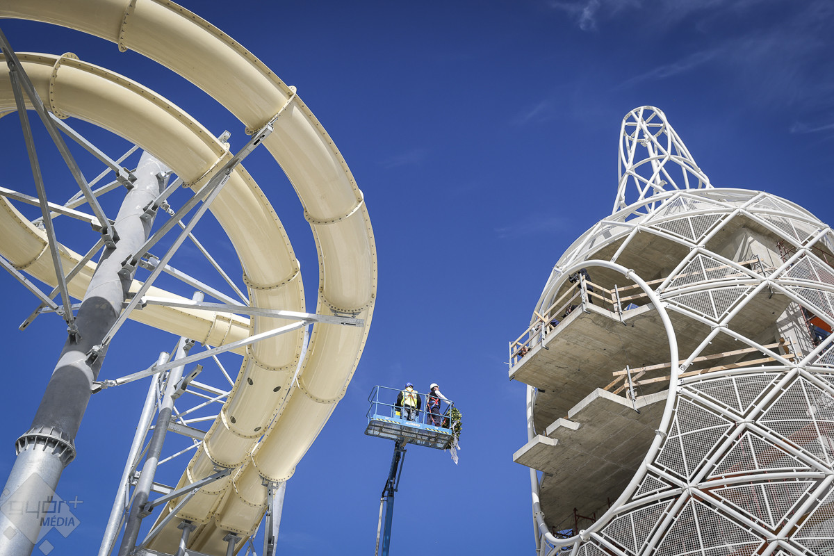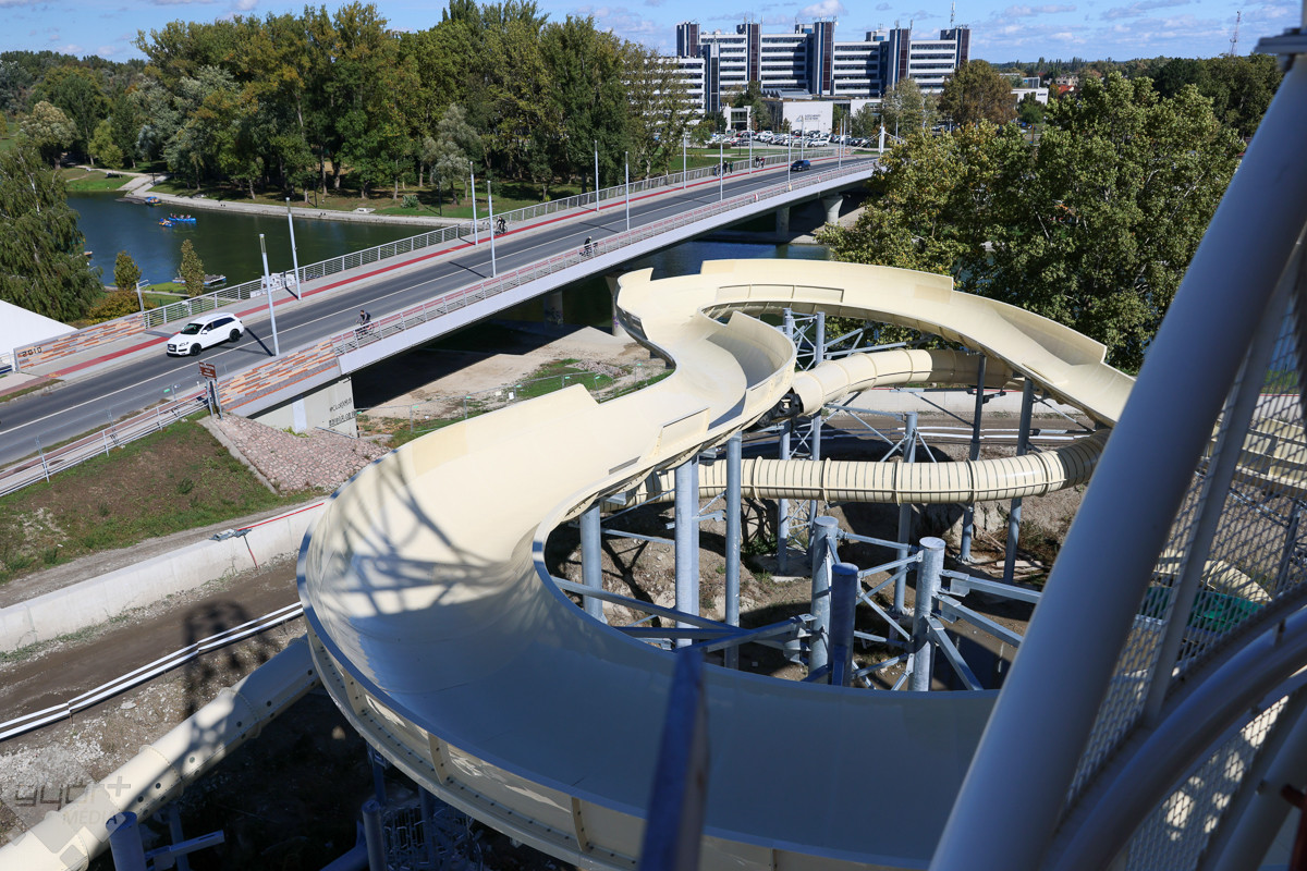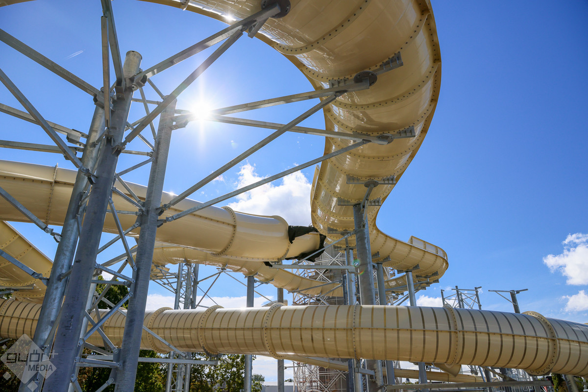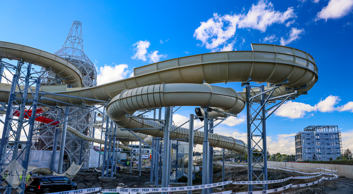 A több mint 21 milliárdos győri vízi élménypark beruházás, amely a Modern Városok Program keretében valósul meg, elérte legmagasabb pontját, amely a szódásszifon-csúszda. Ez alkalomból bokrétaünnepet tartottak szerdán.