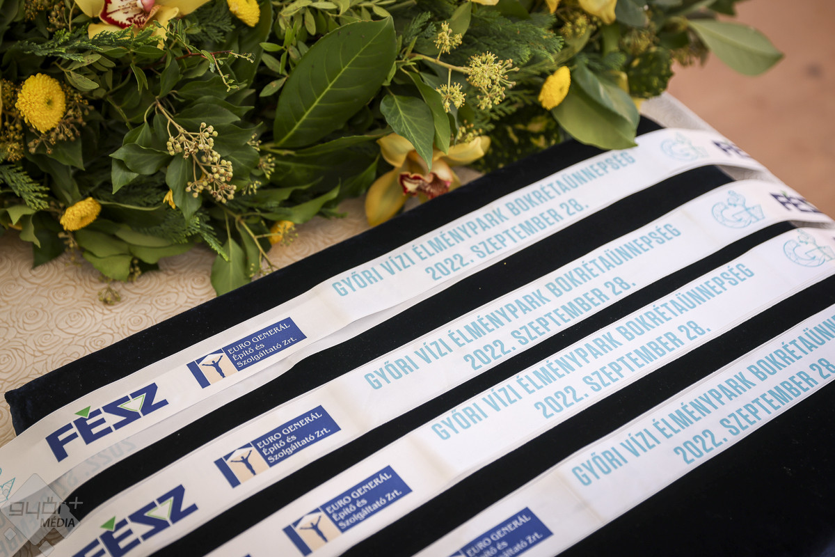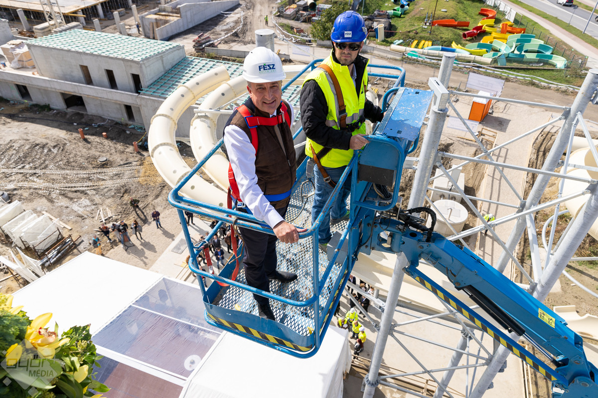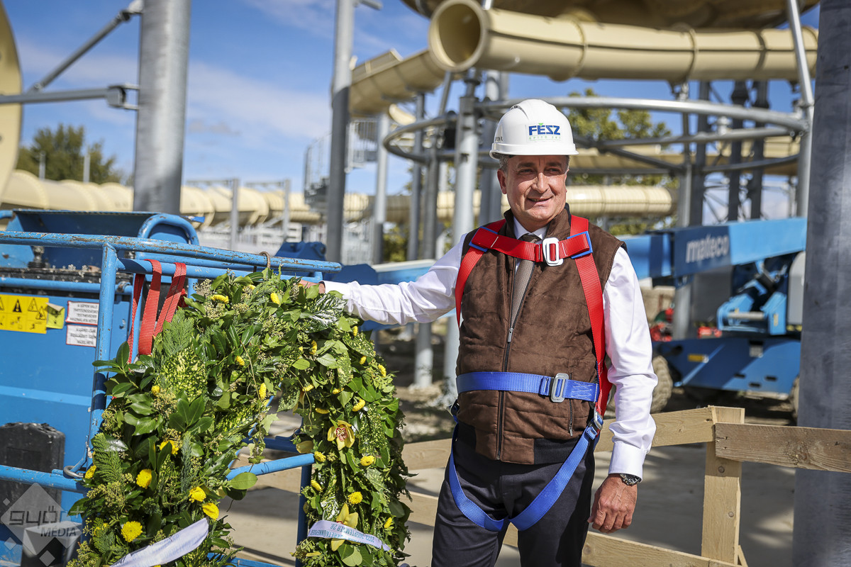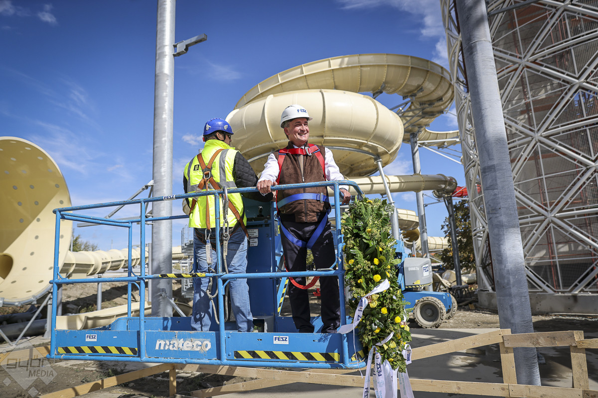 A beszédeket követően Simon Róbert Balázs helyezte fel a szódásszifon-csúszdára a bokrétát. A vízi élményparkot a tervek szerint jövő nyáron vehetik birtokba a látogatók.