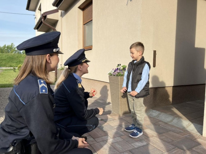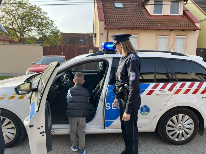 A rendőrök örömmel tettek eleget a felkérésnek. Iglódi Jolán rendőr őrnagy és Unti Vanessza rendőr őrmester közlekedésbiztonsági ajándéktárgyakból összeállított meglepetéscsomaggal köszöntötte az ünnepeltet, majd rendőrautóval szállították a kisfiút és testvérét Adélt az óvodáig.