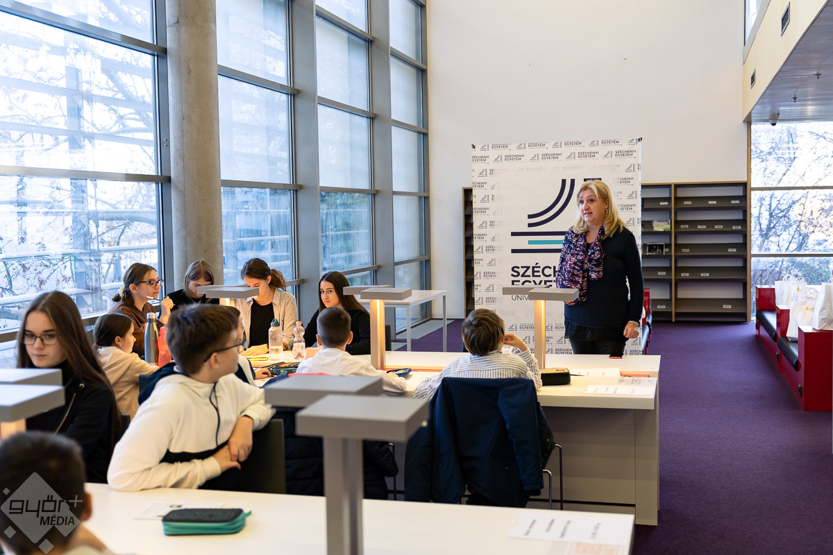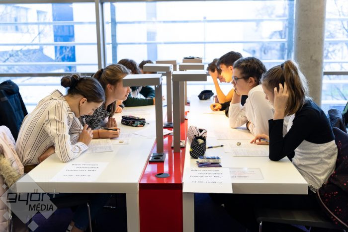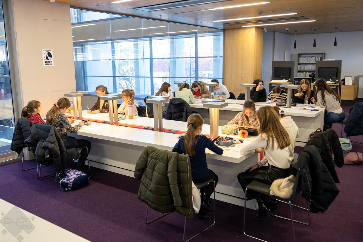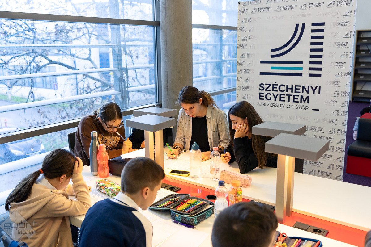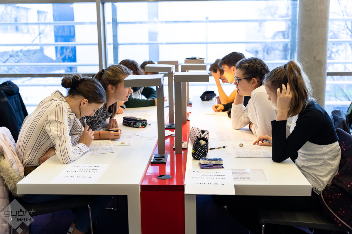 Izgatott kisdiákok gyülekeztek a Széchenyi Egyetem könyvtárában péntek délután, ahol a Bolyai Anyanyelvi Csapatverseny országos döntőjét rendezték meg 3-8. osztályosoknak.