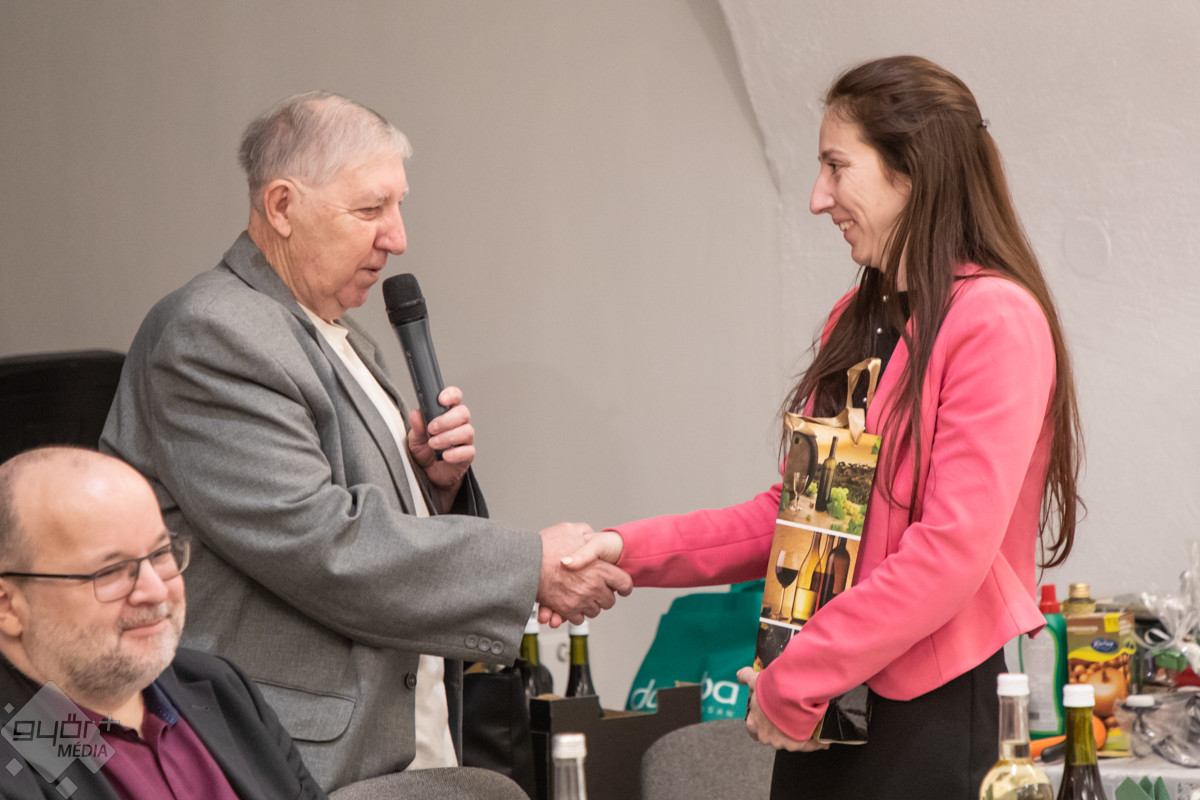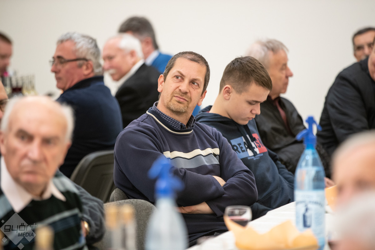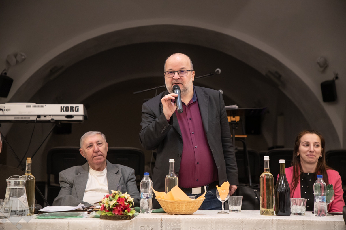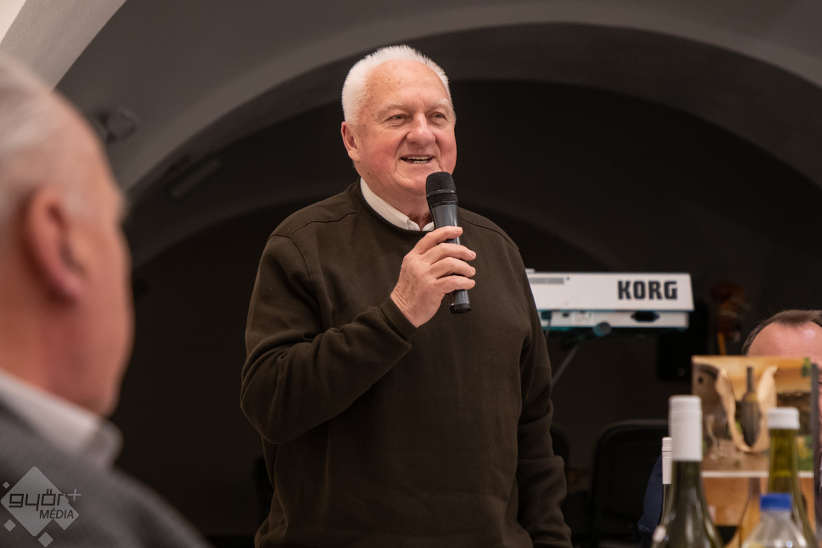 Pintér András, a társaság elnöke a köszöntőjében üdvözölte, Dr. Horváth Sándor Domonkost, a Dr. Kovács Pál Könyvtár és Közösségi Tér igazgatóját is, ugyanis a Ménfőcsanaki és a Gyirmóti Művelődési Ház is a hozzájuk tartozik január elseje óta. Az igazgató örült a meghívásnak és dicsérte a gazdákat, valamint nedűiket is.