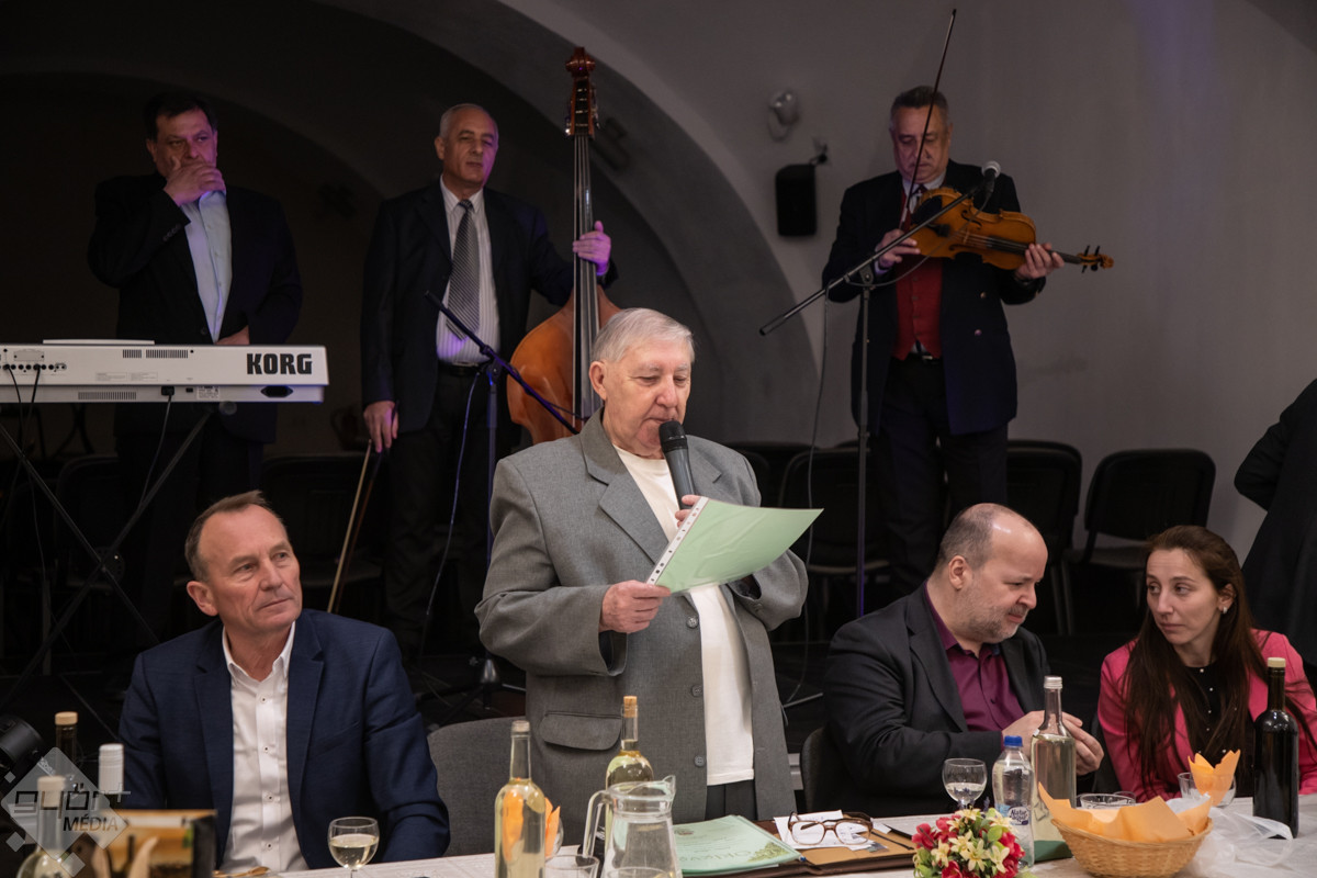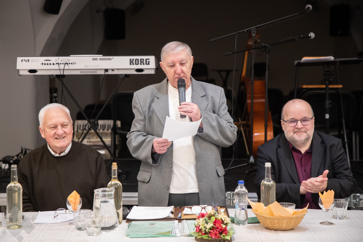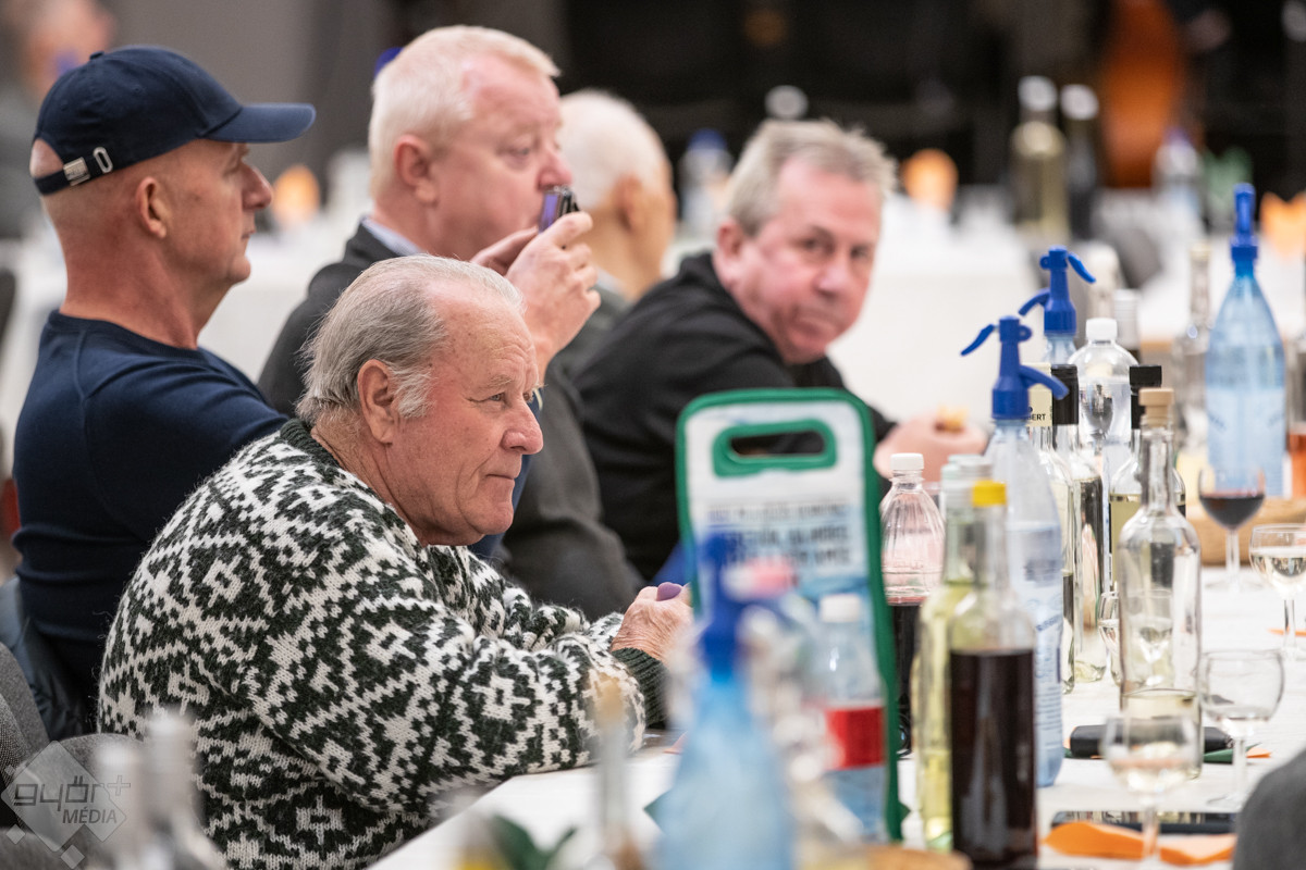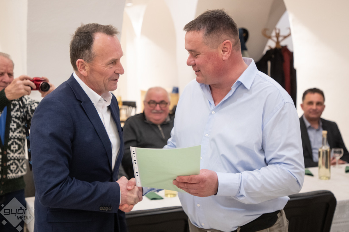Pintér András, a társaság elnöke a köszöntőjében üdvözölte, Dr. Horváth Sándor Domonkost, a Dr. Kovács Pál Könyvtár és Közösségi Tér igazgatóját is, ugyanis a Ménfőcsanaki és a Gyirmóti Művelődési Ház is a hozzájuk tartozik január elseje óta. Az igazgató örült a meghívásnak és dicsérte a gazdákat, valamint nedűiket is.