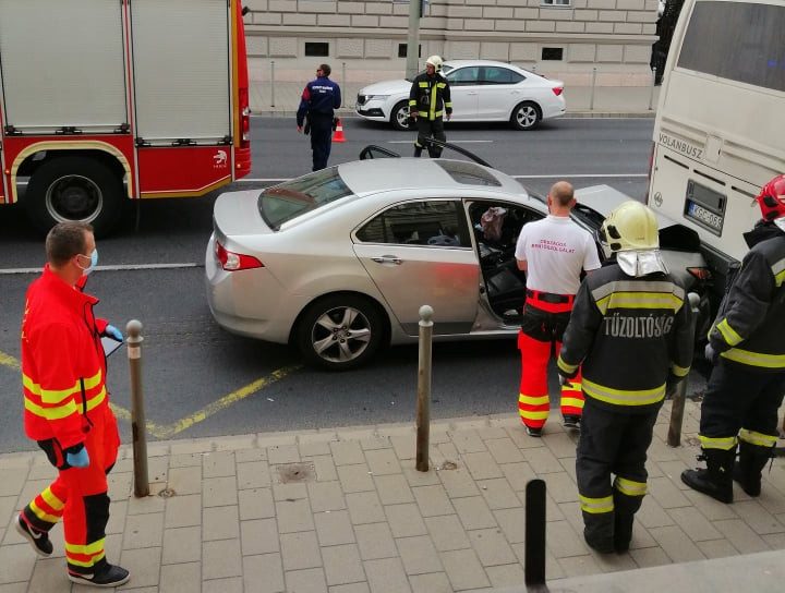 Olvasónktól úgy tudjuk, az épp indulni készülő buszba hajtott bele egy Honda a Szent István úton, a NAV épülete előtt (Szent István út 15-17).