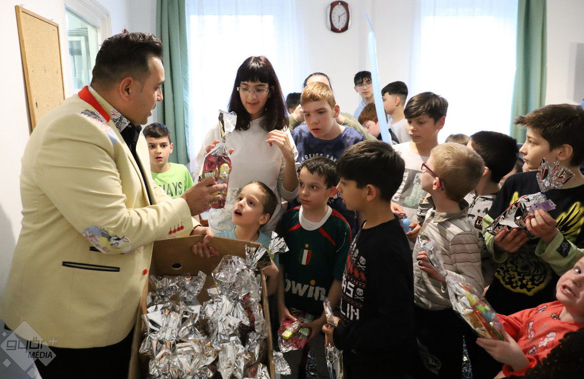 ,,Kaptak egy rekesz epret és nyuszis csomagokat. Vacsorára pedig pizzákat vittünk, aztán pedig sütit és csokoládét ettek a gyerekek. Nagyon örültek az ételnek és persze a plusz ajándéknak is, hiszen vittünk egy bűvészt is, emellett Bódi Csabi énekelt. Remek hangulatot varázsoltak az otthon lakóinak, akik a művésszel együtt énekeltek és táncoltak” – árulta el portálunknak Forgács Mihályné, aki Varga Szabinával és az Arrabona Eagles MC motoros egyesülettel, valamint több civillel összefogva rendkívül fontosnak tartja, hogy szebbé varázsolja az intézetben élő gyerekek életét.