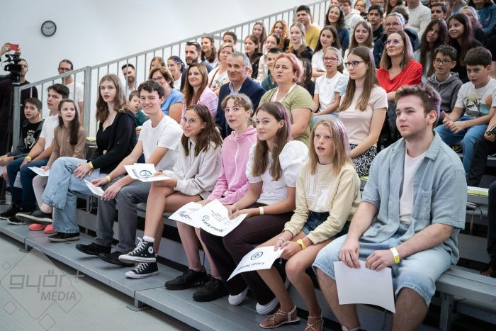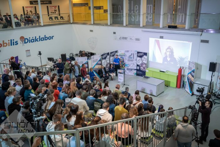 „Az űrmisszió, maga az űrkutatás egyáltalán nem öncélú, gondoljunk csak a teflon edényre vagy a GPS-re. Mindegyiket az űrkutatásnak köszönhetjük” – említette meg fiatal közönségének az egyetemi vezető, zárszóként hozzátéve: elhozta magával unokáját is, Somával együtt nagyon várják már az űrhajóssal való találkozást.