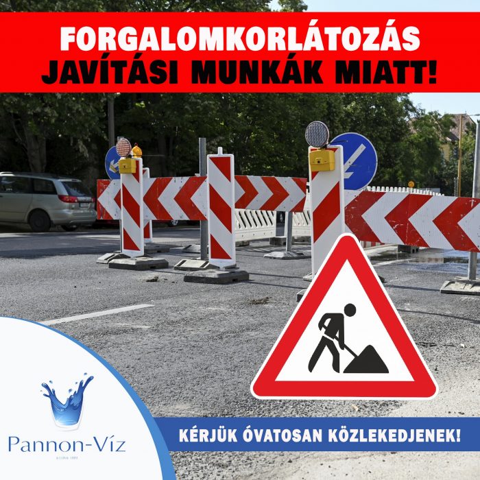 Csőtörés elhárítást végez a Pannon-Víz Zrt. Győrben, a József Attila utca és a Szent Imre út kereszteződésében, a körfogalomnál.