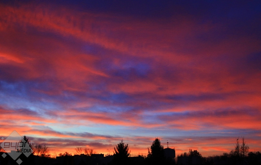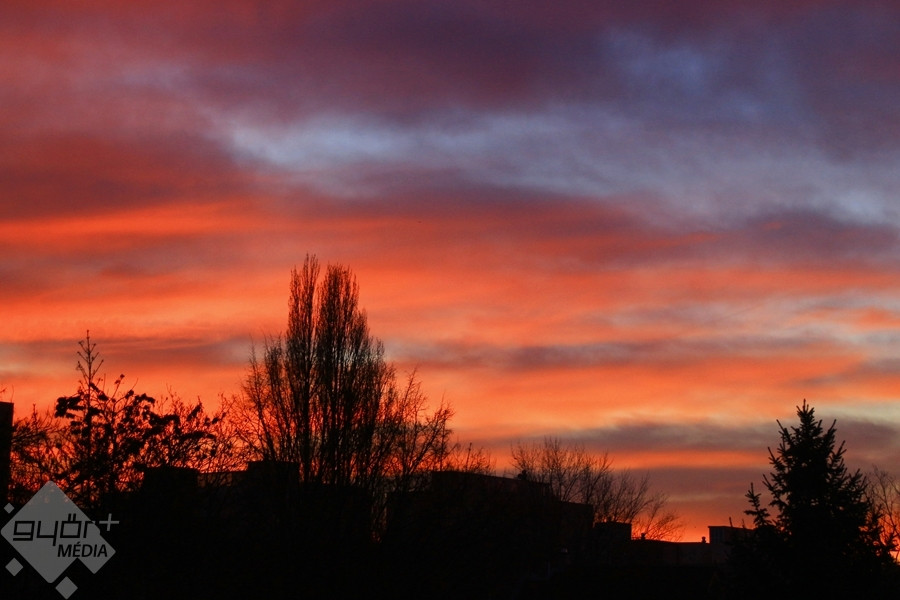 A hideg idő beköszöntével a napkelték és a napnyugták is egyre színesebbek lesznek. Még szinte sötét volt, amikor vörös csíkok jelentek meg a sötét égbolton. Ahogy világosodott, rózsaszín és narancsba öltözött a reggel.