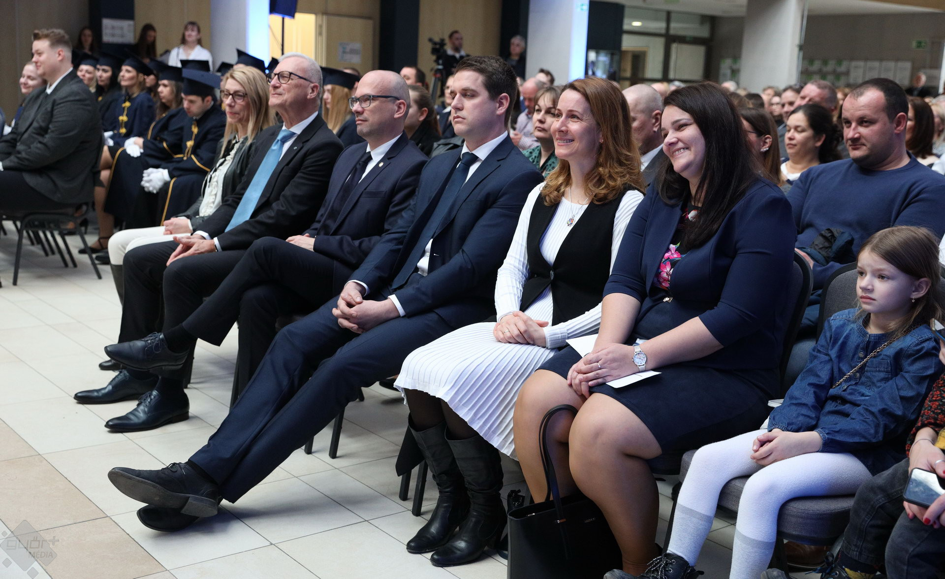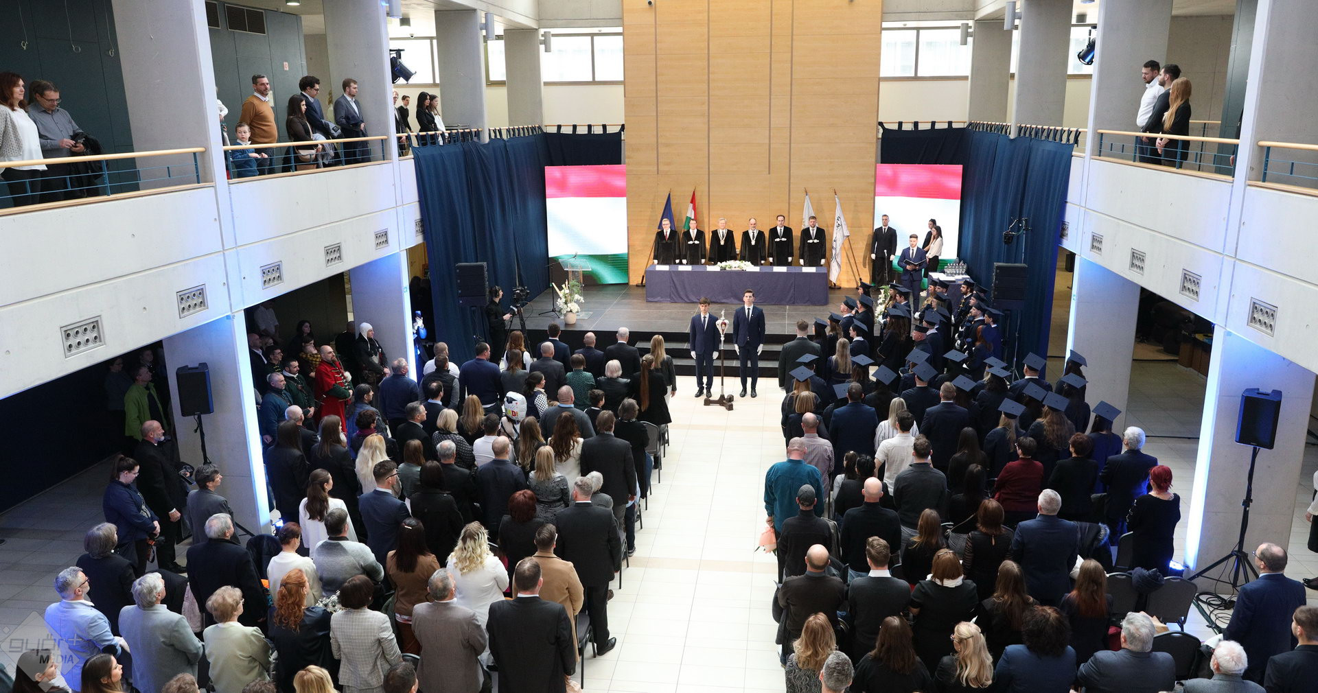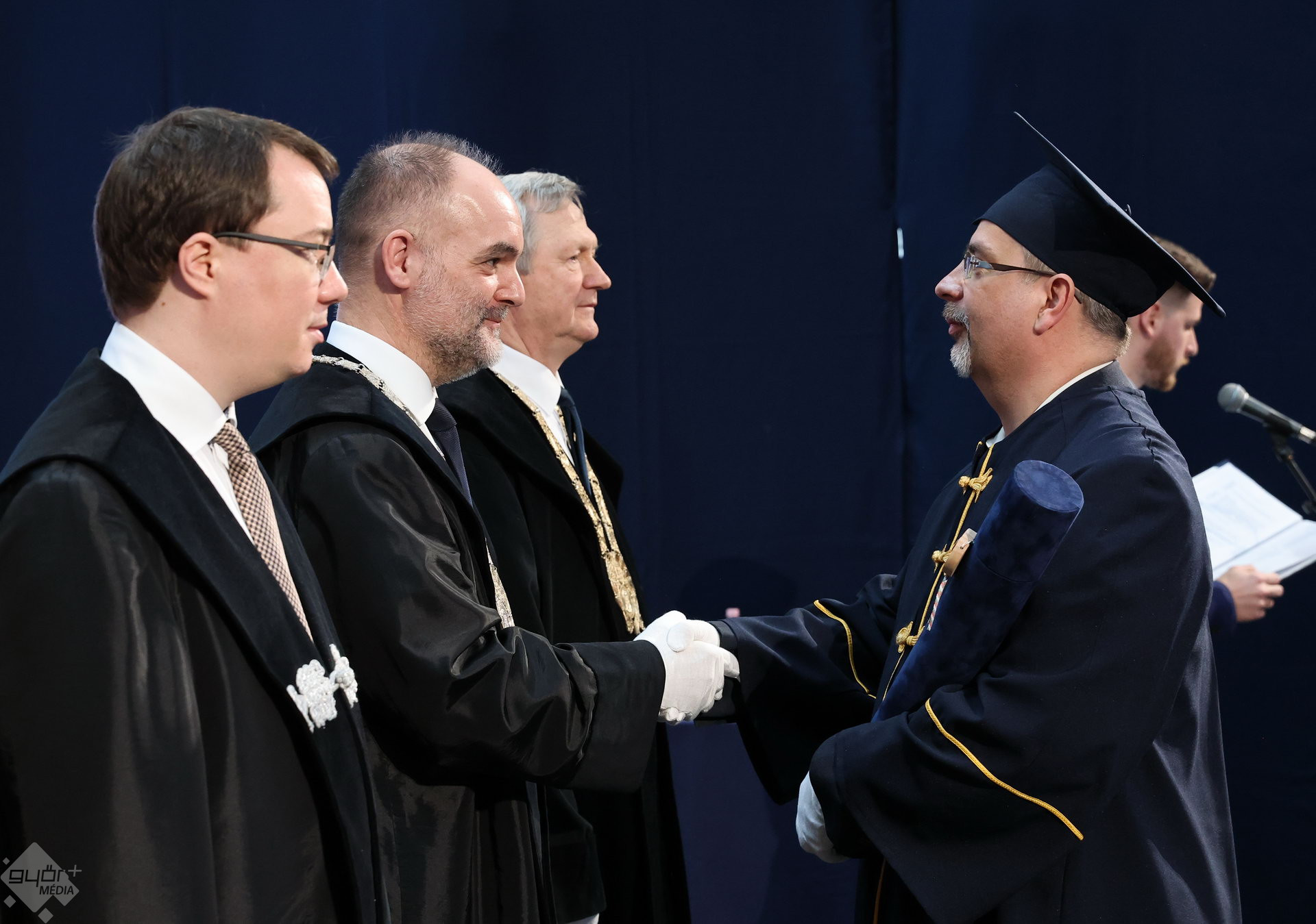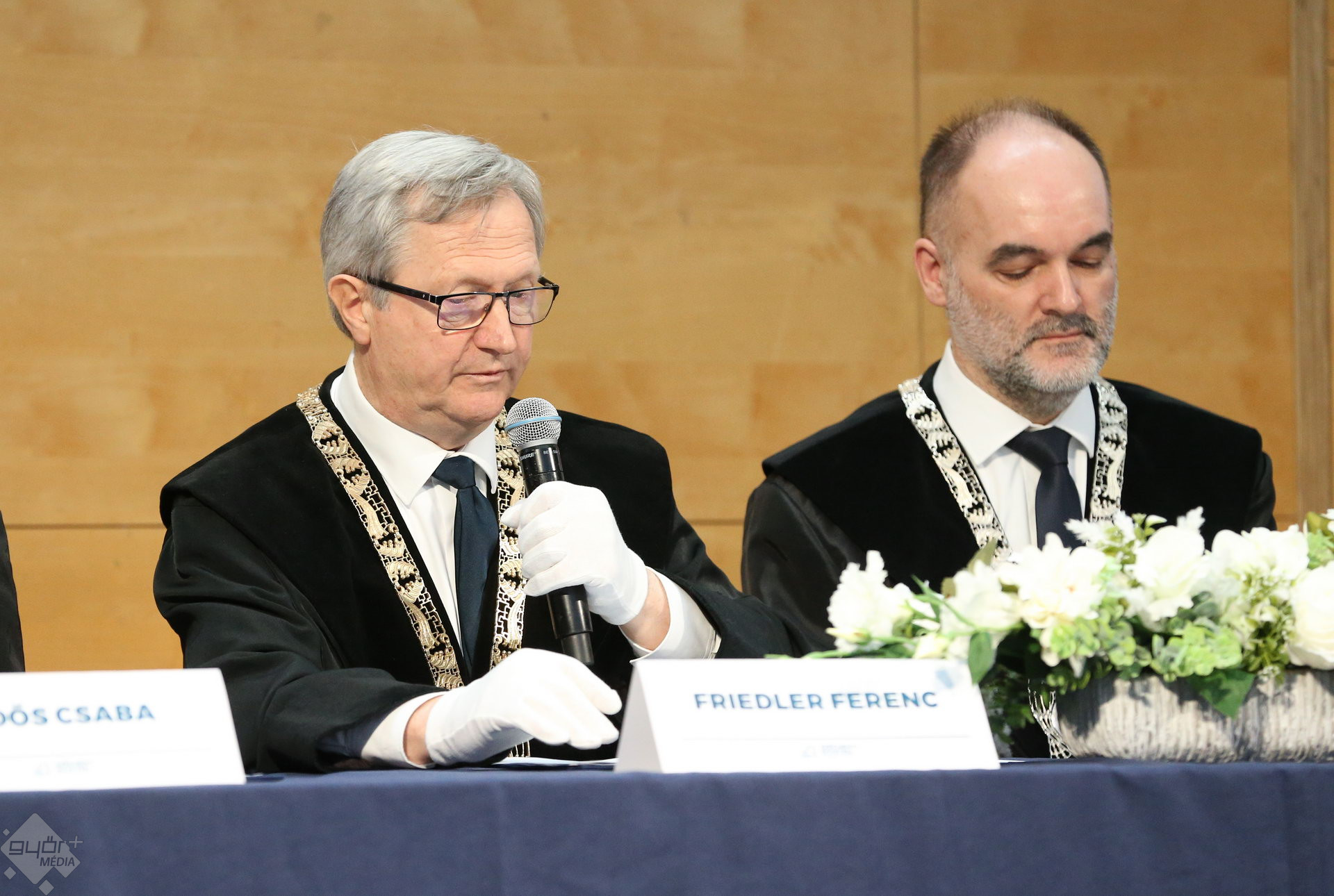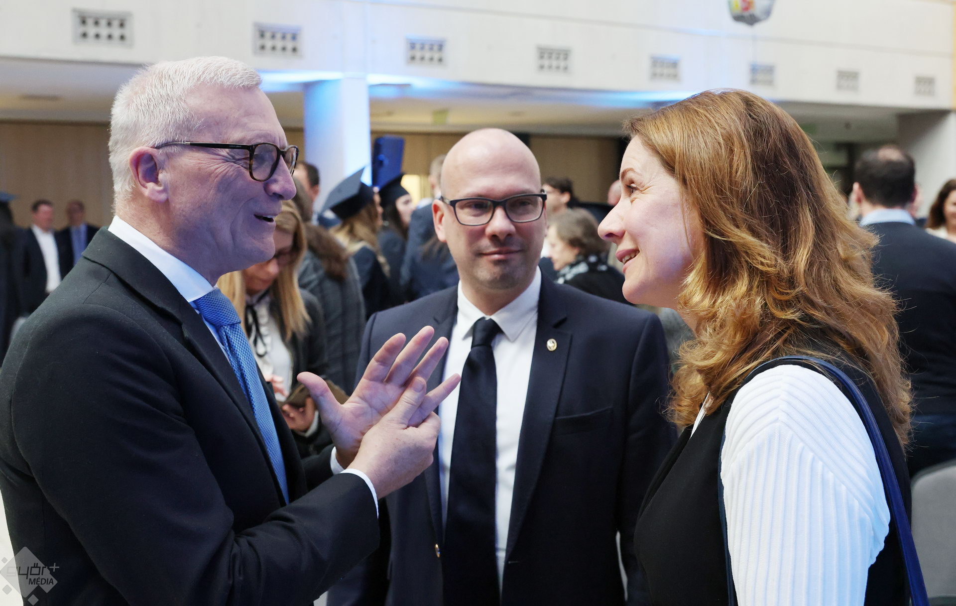 A Széchenyi István Egyetemen elnökségének bevonulásával kezdődött a ceremónia. A végzős hallgatókat Dr. Ferencz Jácint, a munkajogi és szociális jogi tanszék vezetője köszöntötte. Az egyetemi docens kiemelte: „a papír amire diplomájukat nyomtatták tudásuk pillanatnyi állapotát mutatja. Útravalónak megfelelő, de önmagában nem lesz elegendő ahhoz, hogy boldogulni tudjanak az életben. Ezért a diploma birtoklásánál sokkal fontosabb, ami a papír mögött van. Vagyis mind az a tudást és képesség, amit igyekeztünk átadni önöknek.”
