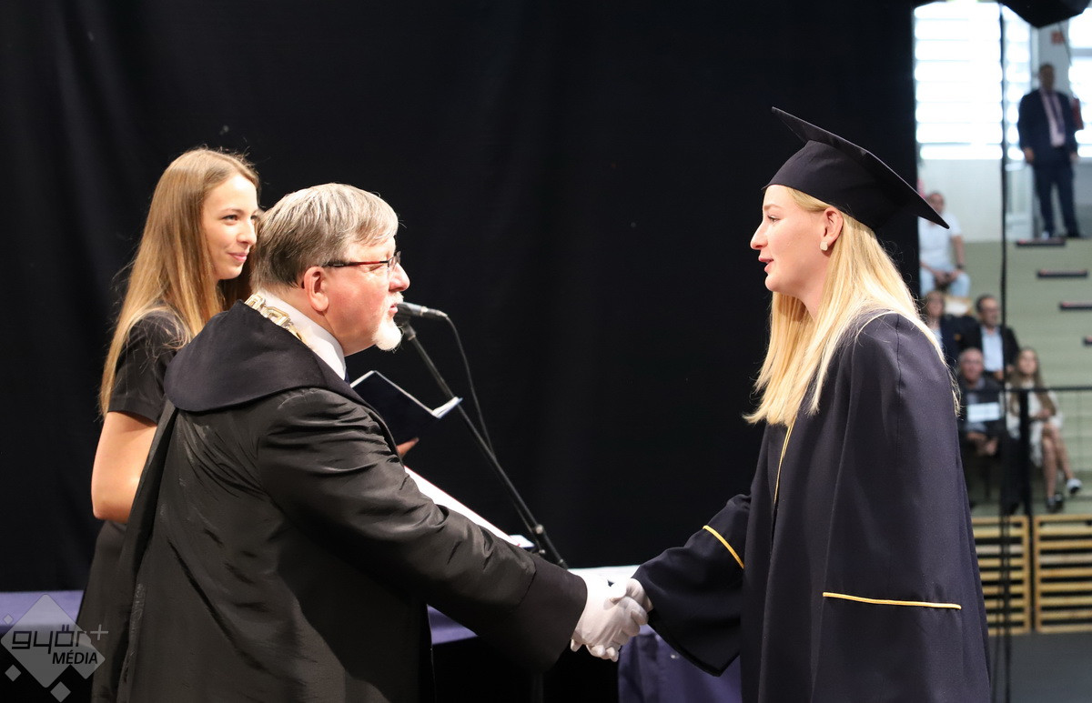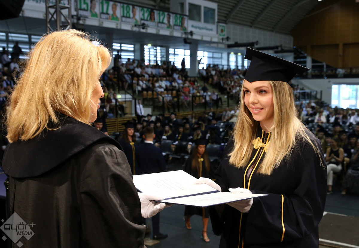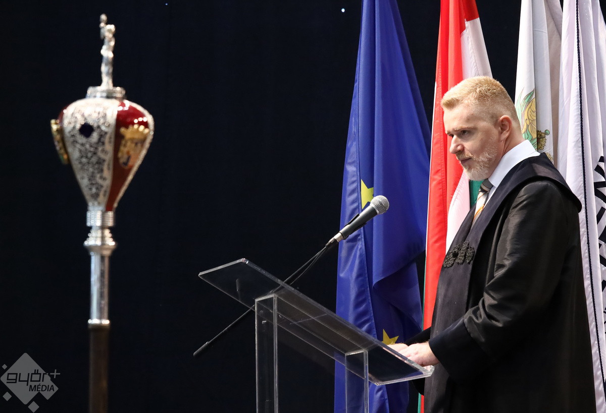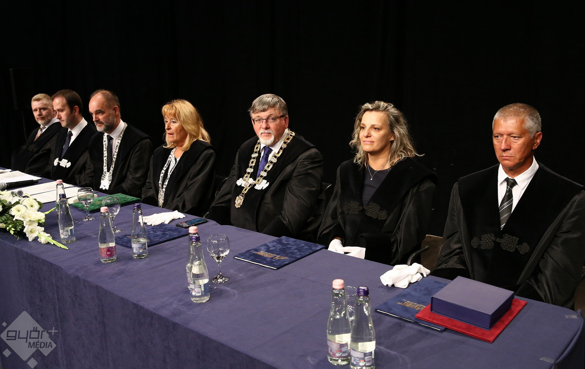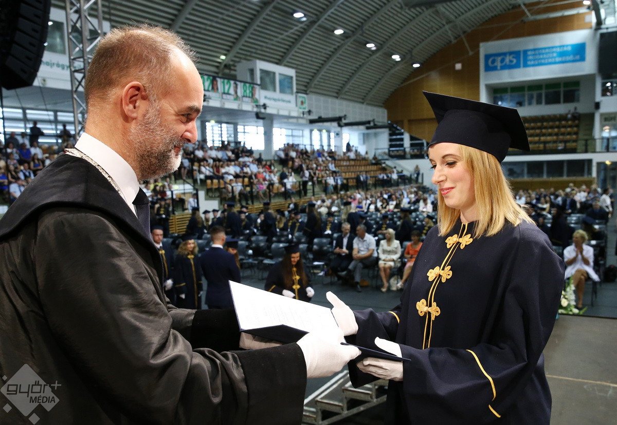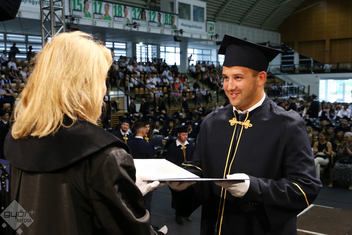 Pontban 10 órakor érkezett az elnökség a pénteki nap első diplomaosztójára. A győri Egyetem Deák Ferenc Állam- és Jogtudományi, illetve az Egészség- és Sporttudományi Karán adtak ár összesen 200 diplomát azoknak, akik sikeren vették az akadályokat és az államvizsgán is túljutottak. A jogi kar tanszékvezetője úgy búcsúzott a végzettektől, hogy tudásuk és diplomájuk nagy eredmény, de komoly felelősség is.
