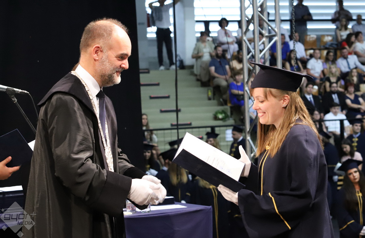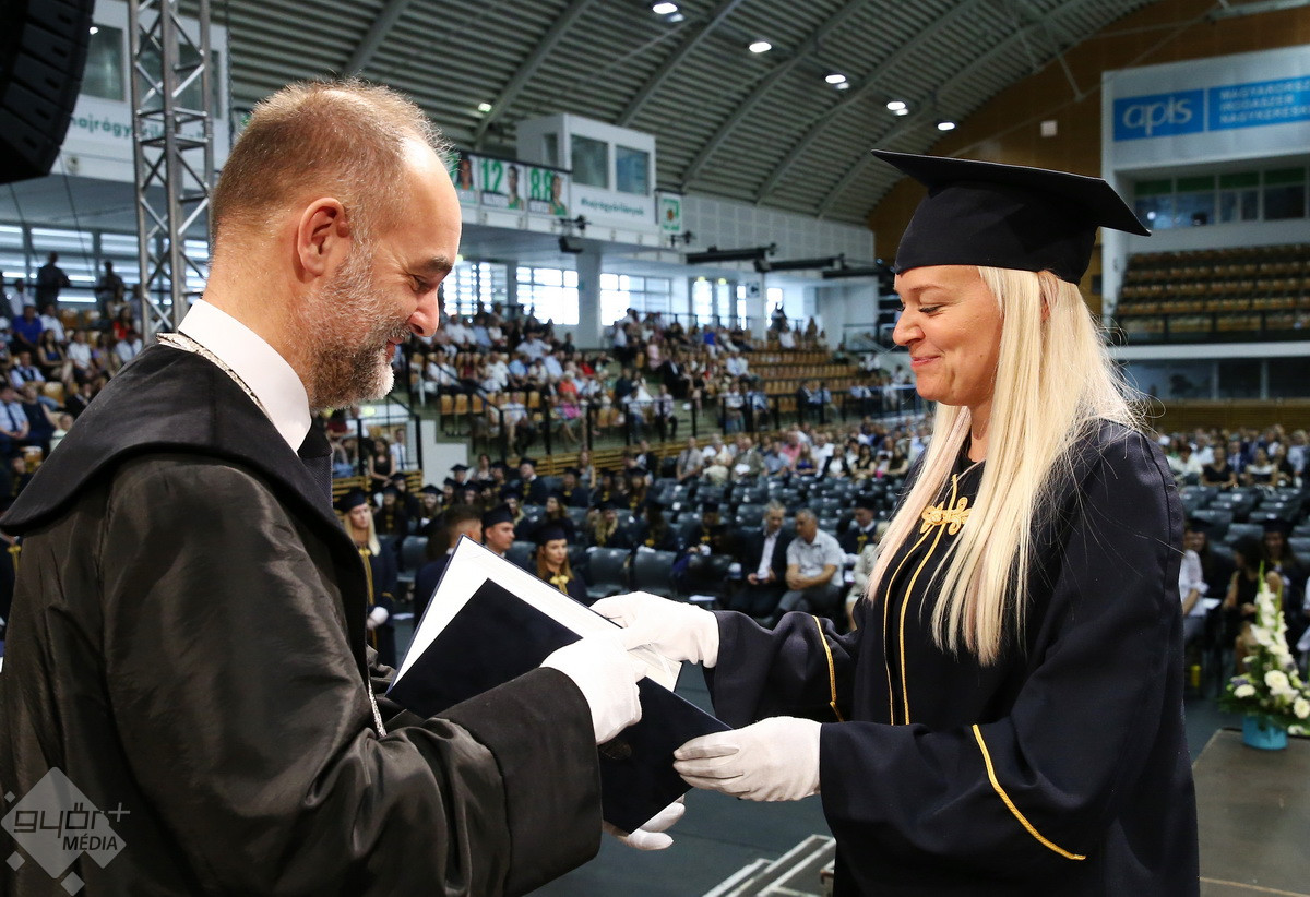 „Célba értünk, megérte a sok tanulás, készülés, éjszakázás, illetve a tanórákon kívüli tevékenység, mint a Covid-járvány idején a védekezésben való részvétel, egy nagy család, az egészségügyisek családjának részévé váltunk itt Győrben” – emelte ki Farkas Barbara ápolás és betegellátás alapszakos hallgató. Ezt követően előbb oktatói majd hallgatói díjakat adtak át, végül pedig a frissen végzettek szép sorban átvették jól megérdemelt diplomáikat.