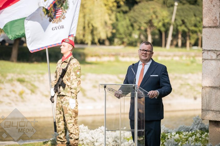 Győr város nevében dr. Fekete Dávid lépett a pulpitushoz. A város hivatalos ünnepségén a képviselő elmondta, hogy ezen a napon érdemes azokra gondolni, akik a magyarság szempontjából kulcsfontosságú döntéseket hoztak ezer esztendővel ezelőtt. „Az államalapítás időszaka ma már egy szép, dicső, valóban egy ezer éves múltra visszatekintő emlékként él a mindennapjainkban. De azért ez nem volt olyan szép, békés és egyszerű, mint amennyire azt az elmúlt ezer esztendő megszépítette” – utalt a honfoglalásra és egy komoly válaszútra, amely választásra kényszerítette eleinket.