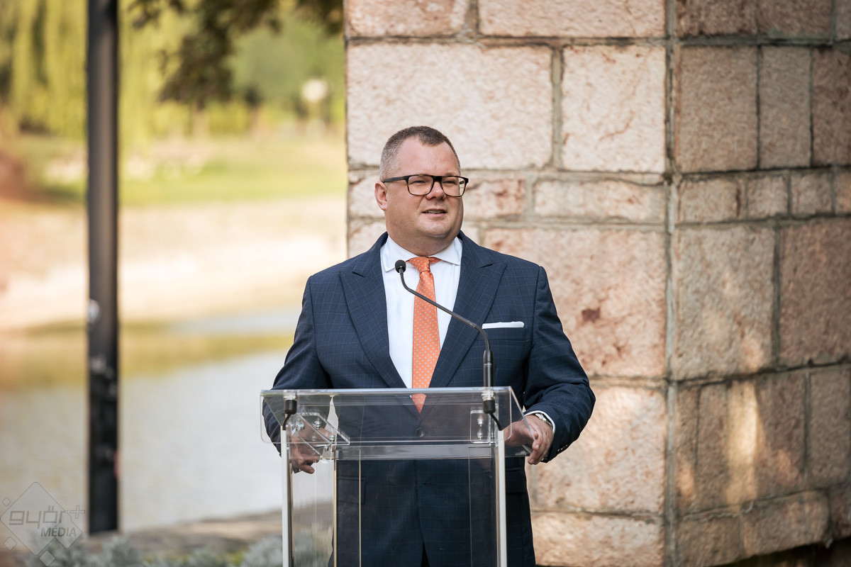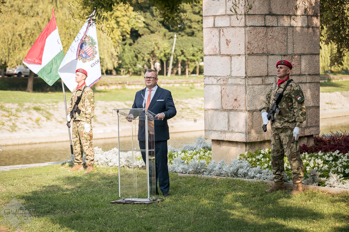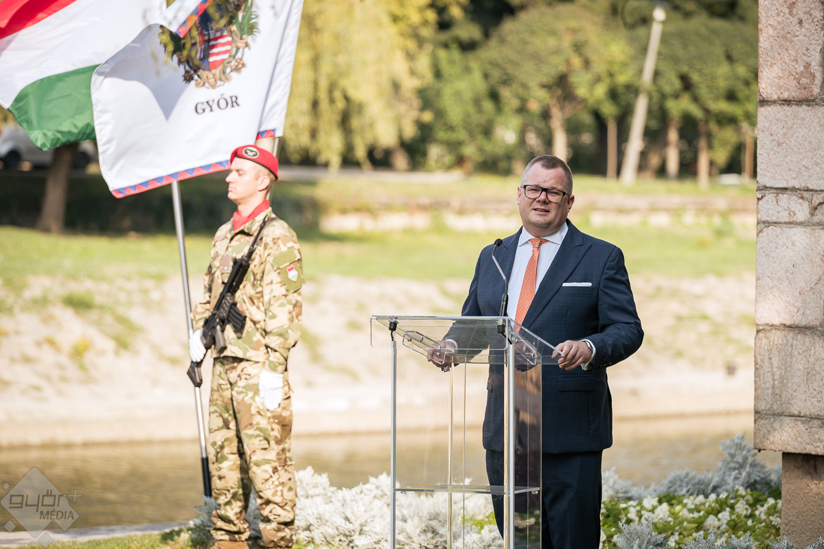 Győr város nevében dr. Fekete Dávid lépett a pulpitushoz. A város hivatalos ünnepségén a képviselő elmondta, hogy ezen a napon érdemes azokra gondolni, akik a magyarság szempontjából kulcsfontosságú döntéseket hoztak ezer esztendővel ezelőtt. „Az államalapítás időszaka ma már egy szép, dicső, valóban egy ezer éves múltra visszatekintő emlékként él a mindennapjainkban. De azért ez nem volt olyan szép, békés és egyszerű, mint amennyire azt az elmúlt ezer esztendő megszépítette” – utalt a honfoglalásra és egy komoly válaszútra, amely választásra kényszerítette eleinket.