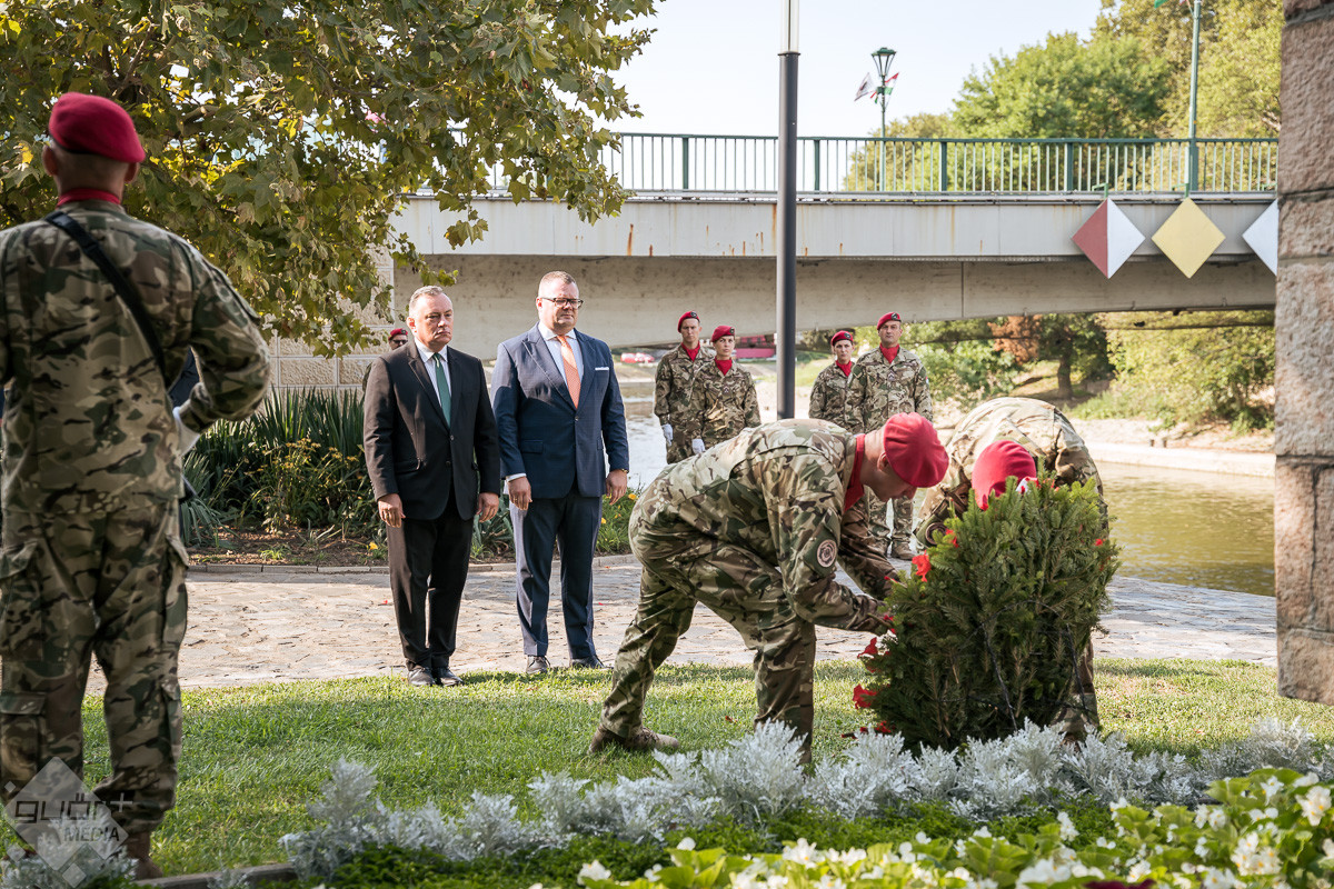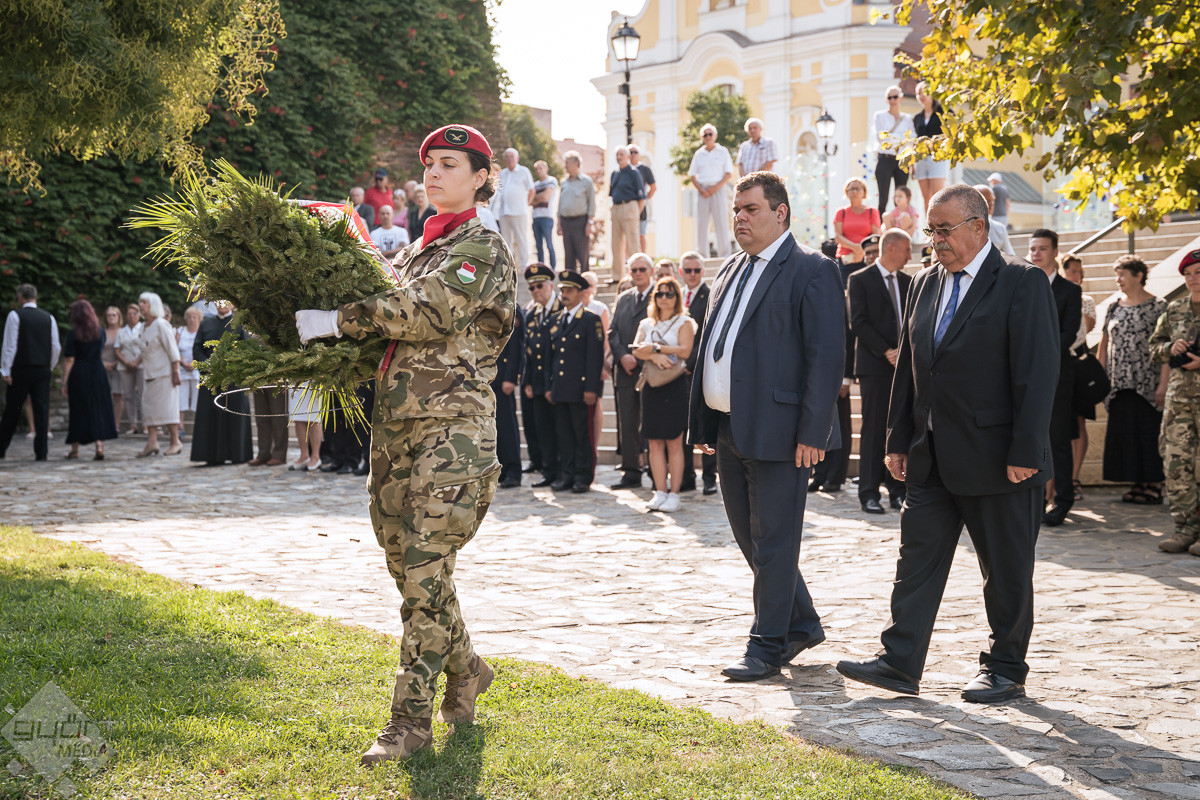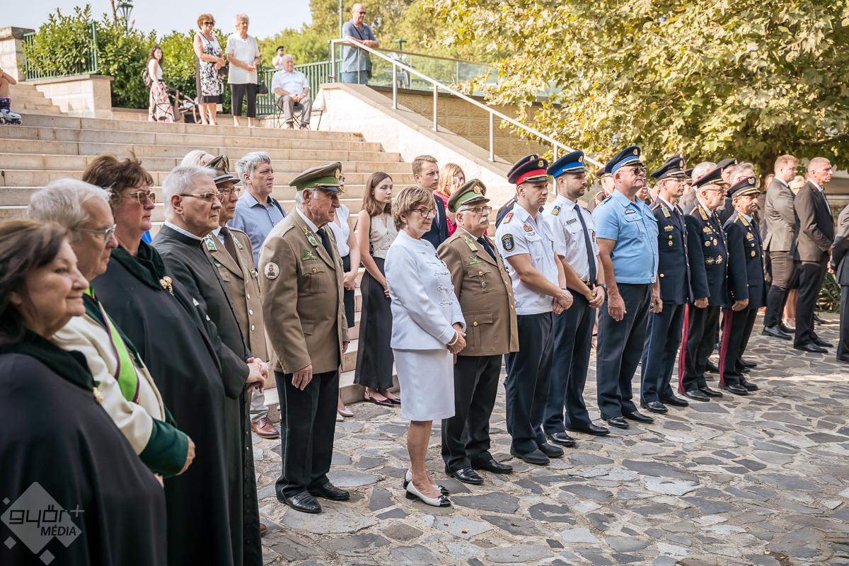 Az ünnepi műsorban közreműködött Kóródi-Kovács Anna, aki egy Szent István-dalt adott elő, majd a városi és hivatásos szervezetek elhelyezték Szent István emlékmű talapzatához a koszorúikat. Győr Megyei Jogú Város, a Magyar Honvédség Dánielffy Tibor 205. Légvédelmi Rakétaezred, a Győr-Moson-Sopron Vármegyei Rendőr-főkapitányság és a Győri Rendőrkapitányság, a Szent László Határőr Hagyományőrző Egyesület és a Történelmi Vitézi Rend Területi Székkapitányság, az 1956-os Magyar Nemzetőrség, a Szent Lázár Lovagrend, a Magyar Nemzetőrség Győr-Moson-Sopron megyei Török István Szövetség, a Magyar Politikai Foglyok Szervezete és a Vitézi Rend Győr-Moson-Sopron Vármegyei Kapitányság, a Fidesz győri szervezetei, a Magyar Szocialista Párt Győr és környéke, a Fidelitas Győr, az Összefogás Győrért Egyesület, a Széchenyi István Egyetem, valamint a Győri Tankerületi Központ képviselői tisztelegtek koszorúikkal.