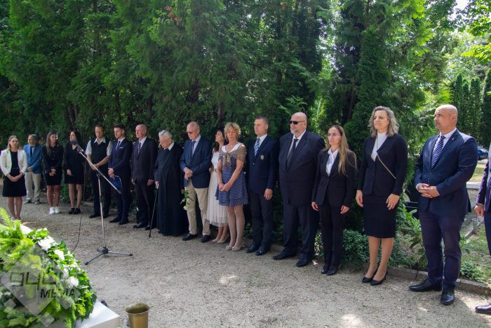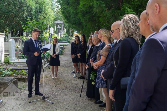 Az emlékezők végül elhelyezték koszorúikat a síron.
