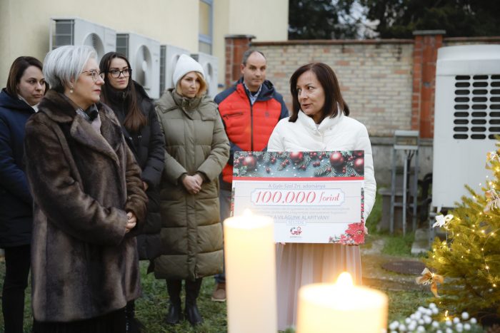 Fellobbant a második gyertya lángja a Győr-Szol Zrt. adventi koszorúján – újabb adomány, ezúttal az Egy a világunk alapítványnak.