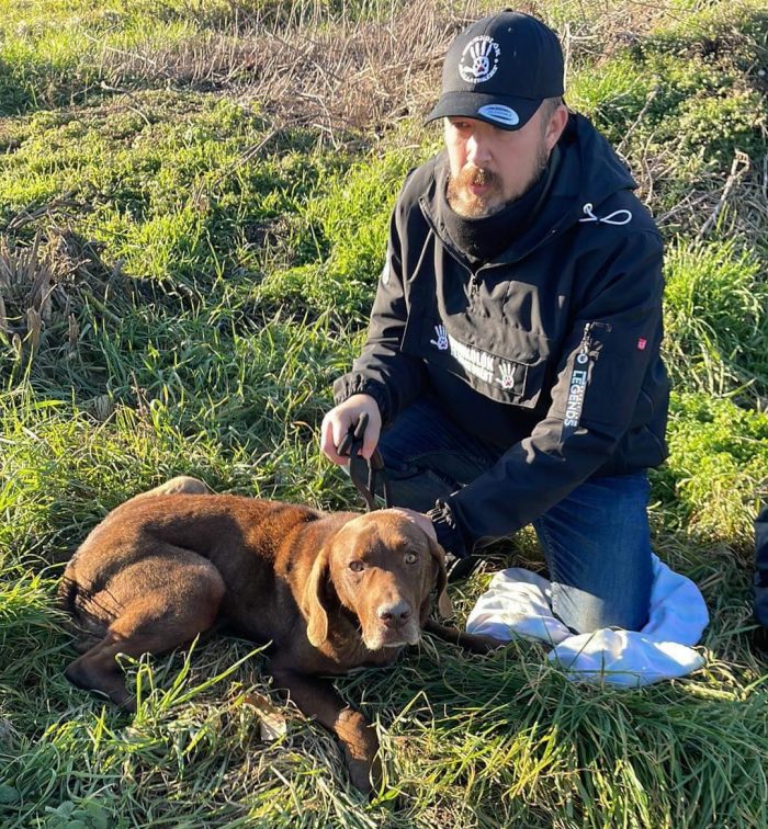 Kocsis Balázs és Csillag Balázs persze nem pihenéssel töltötték 2023 első napját, éppen egy németjuhászt vittek haza, amikor a jelzés megérkezett hozzájuk. Nem késlekedtek, gyorsan Töltéstava felé vették az irányt. Meglehetősen sokat kellett keresniük a kutyát, mert a leírás alapján egy árkot kerestek, végül azonban egy fedetlen akna foglya volt az eb.